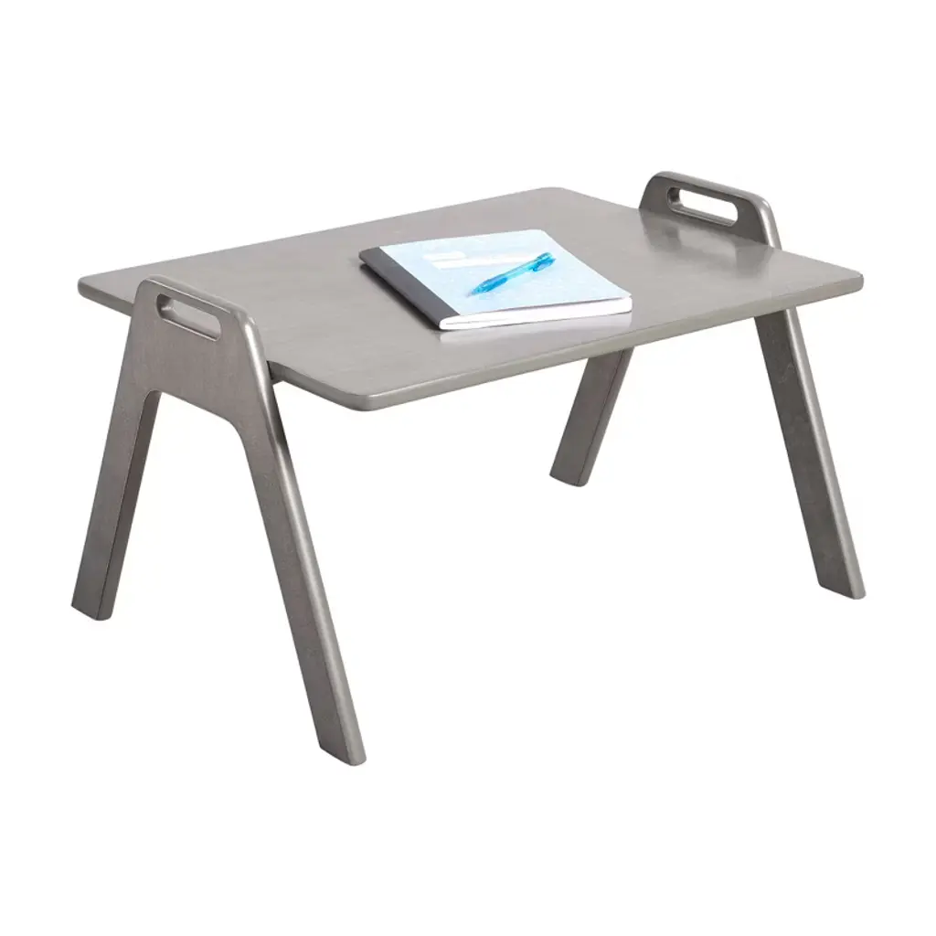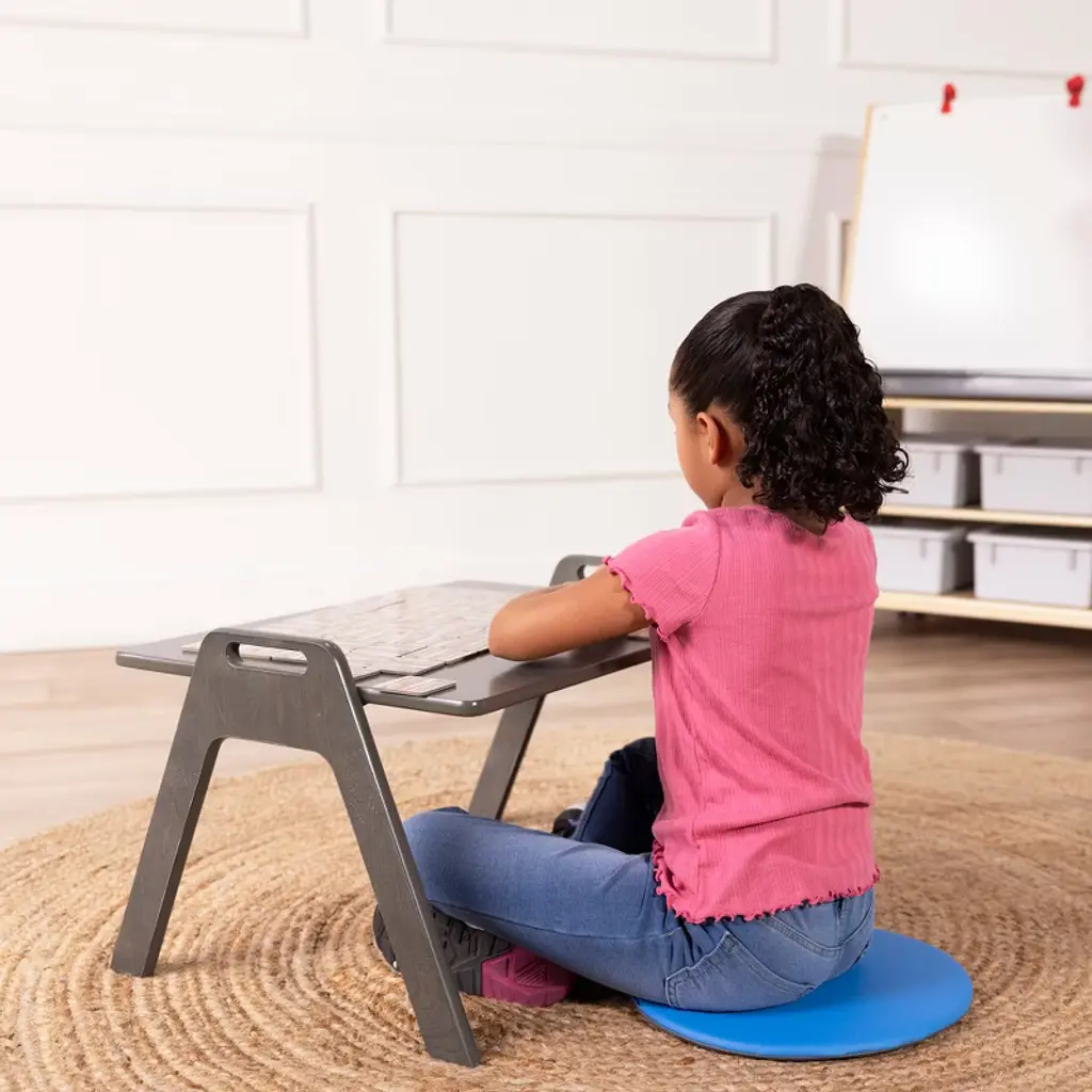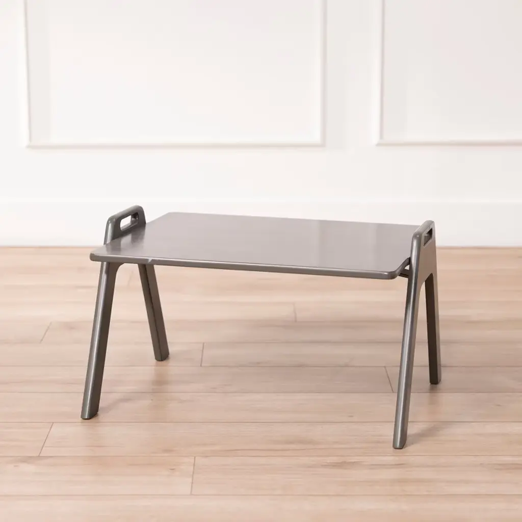 ECR4Kids Table2Go, inspired by Montessori principles, is designed to support children's learning and development in flexible and engaging ways. This simple yet versatile activity table encourages exploration, offering a dedicated workspace for hands-on tasks such as drawing, coloring, and arts and crafts. With its low height and lightweight, portable design, this kids art table fosters independence by enabling children to access materials and activities. The Chowki table promotes focused work, providing a distraction-free environment that helps young learners develop essential skills like concentration. Perfect for social interaction, the wooden lap desk can be used collaboratively, helping children build communication and teamwork skills while respecting shared spaces. Designed for floor-level use, the portable desk supports children in kneeling or sitting comfortably. Build-in handles allow parents and teachers to rearrange their classroom or playroom for group activities or individual learning. When it’s time to pack up, the drawing table can be stacked up to three high for space-saving storage. Felt pads help protect floors. Constructed from sustainably harvested birch plywood with a durable finish that seals the wood surface and resists scratching. A UV inhibitor helps furniture resist ultraviolet light and yellowing.