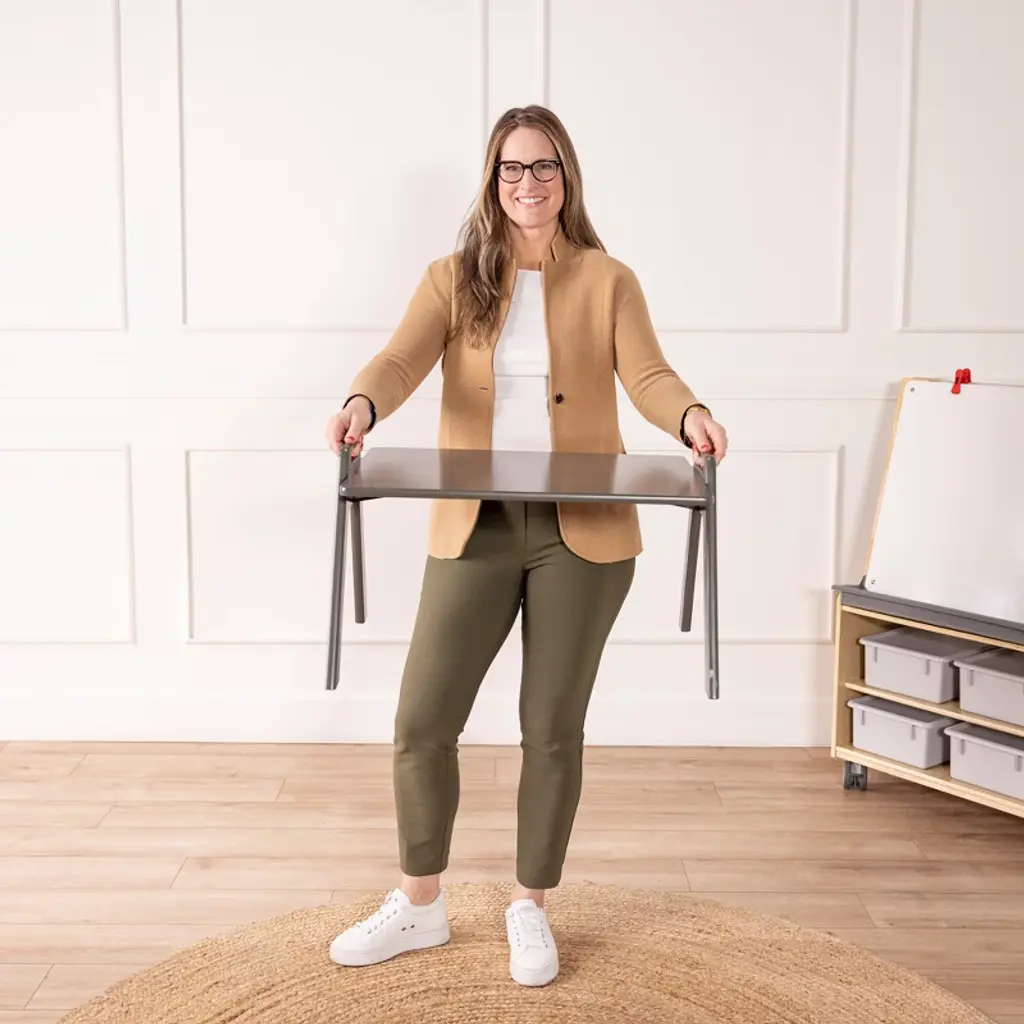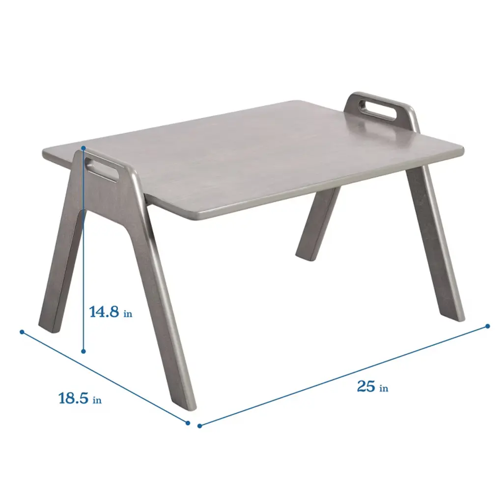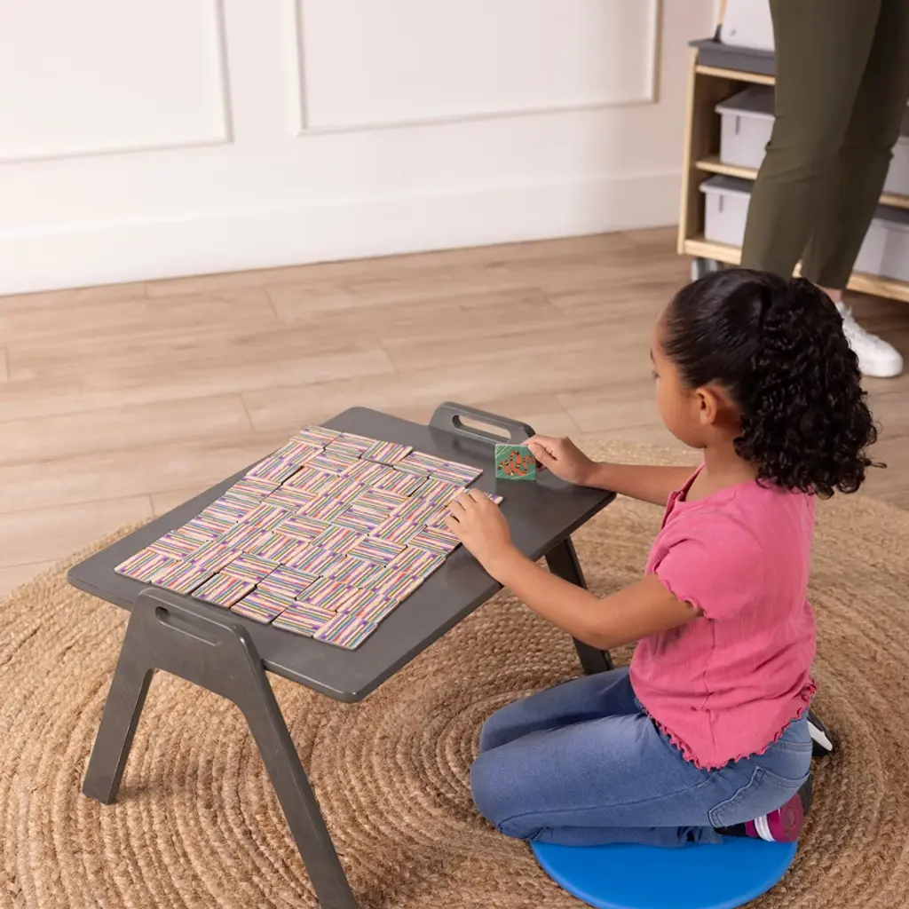 ECR4Kids Table2Go, inspired by Montessori principles, is designed to support children's learning and development in flexible and engaging ways. This simple yet versatile activity table encourages exploration, offering a dedicated workspace for hands-on tasks such as drawing, coloring, and arts and crafts. With its low height and lightweight, portable design, this kids art table fosters independence by enabling children to access materials and activities. The Chowki table promotes focused work, providing a distraction-free environment that helps young learners develop essential skills like concentration. Perfect for social interaction, the wooden lap desk can be used collaboratively, helping children build communication and teamwork skills while respecting shared spaces. Designed for floor-level use, the portable desk supports children in kneeling or sitting comfortably. Build-in handles allow parents and teachers to rearrange their classroom or playroom for group activities or individual learning. When it’s time to pack up, the drawing table can be stacked up to three high for space-saving storage. Felt pads help protect floors. Constructed from sustainably harvested birch plywood with a durable finish that seals the wood surface and resists scratching. A UV inhibitor helps furniture resist ultraviolet light and yellowing.