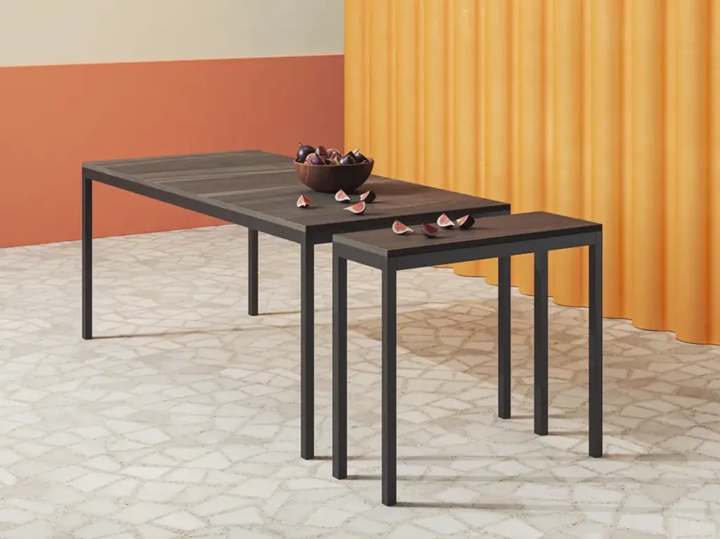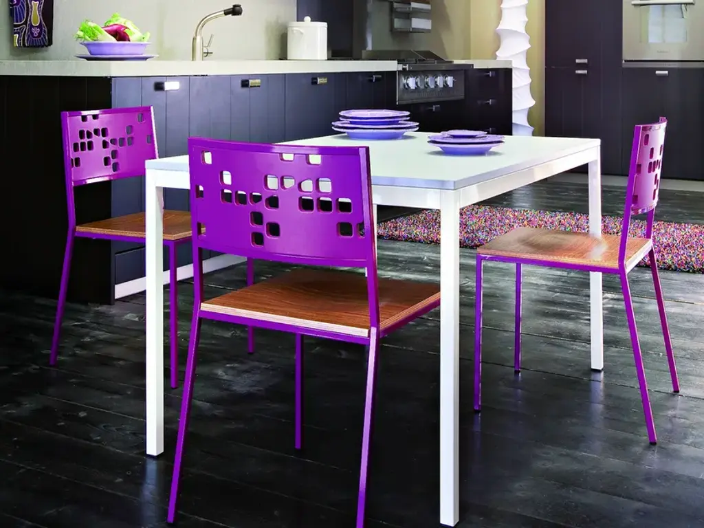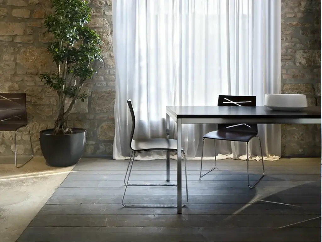 Edward is a 4 legs table in various sizes for home, office and contract with tops aligned to the frame. Versions: size 800/1200/1600/1800/2000 x 800 mm, H 715 mm. Materials and colors: chrome-plated steel, painted aluminium, white and black. Tops: Laminate or HPL or Solid core from sample bookPainted or chromed steel table, 40x30 perimeter and 30x30 legs tube, assembling. Squared or rectangular 27 mm tops follow the frame to the edge.