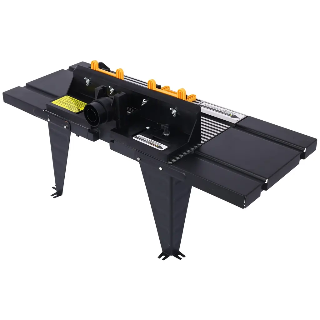 Features:Enhanced Workspace: This top-of-the-line router table not only includes a spacious main table but also features extension tables on both ends. With their extra-large and easy-slide surface, you'll have ample room to work on even the largest projects.Enhanced Safety: Thanks to the retractable guard inserted into the fence, wood chips and debris are kept contained, ensuring a clean and safe working environment. Designed for routers with up to a 6-inch base plate diameter, this table guarantees compatibility with a wide range of router bits.Versatile Functionality: Our router table is equipped with a multifunctional fence that provides excellent support around the bit, allowing you to tackle a variety of woodworking tasks. Additionally, the inclusion of a precise miter gauge on the tabletop enables you to make straight and predictable cuts with ease, while also assisting in angle measurement.Durable Construction: Engineered with a combination of an aluminum alloy main table and steel extension tables and structure, this router table is built to last. The rustproof aluminum table is not only durable but also lightweight, making it convenient to move and transport. Furthermore, the wide-stance, heavy-duty steel stands enhance stability during operation.Specification:Product Dimensions: