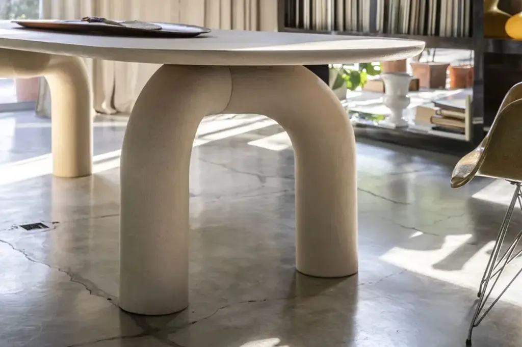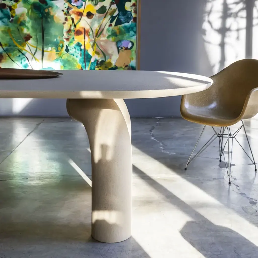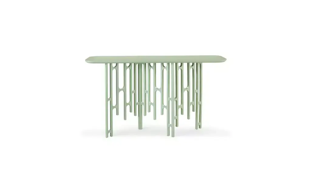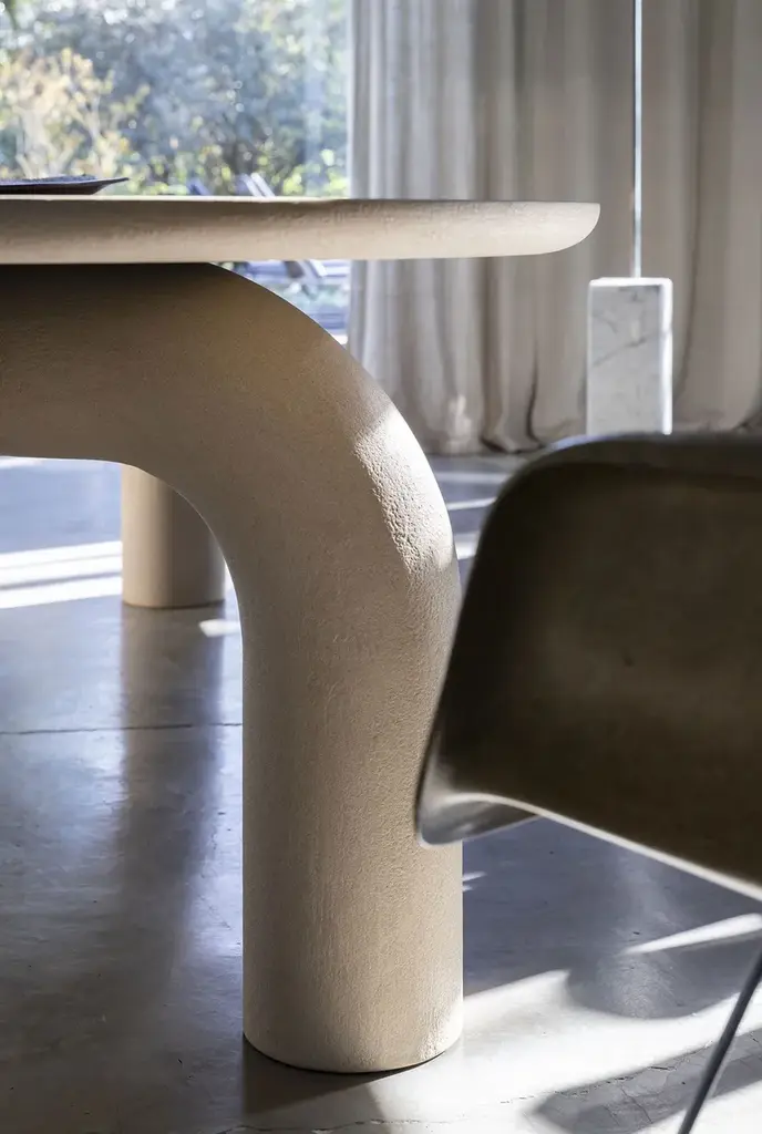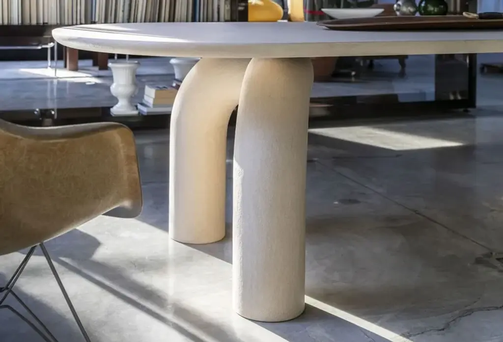Elephante is a rectangular table with a rigid polyurethane base and a tambour wood top. Available in matte lacquer or direct glossy lacquer (brushed top) finishes, in all RAL colors from the sample collection, or hand-spatulated textured finish.Available finishes:MEL14R250/300 OP matte lacquer;MEL14R240/300 L glossy lacquer;MEL14R240/300 M textured.