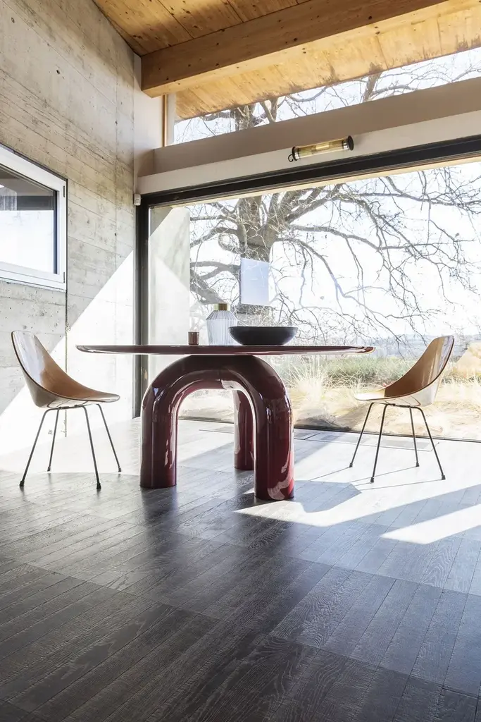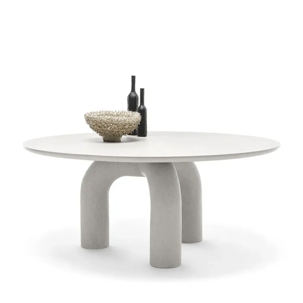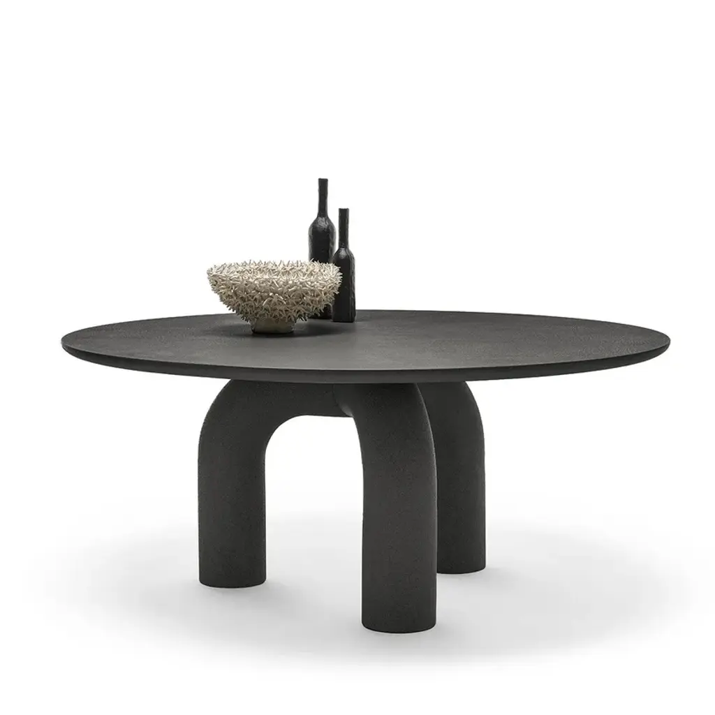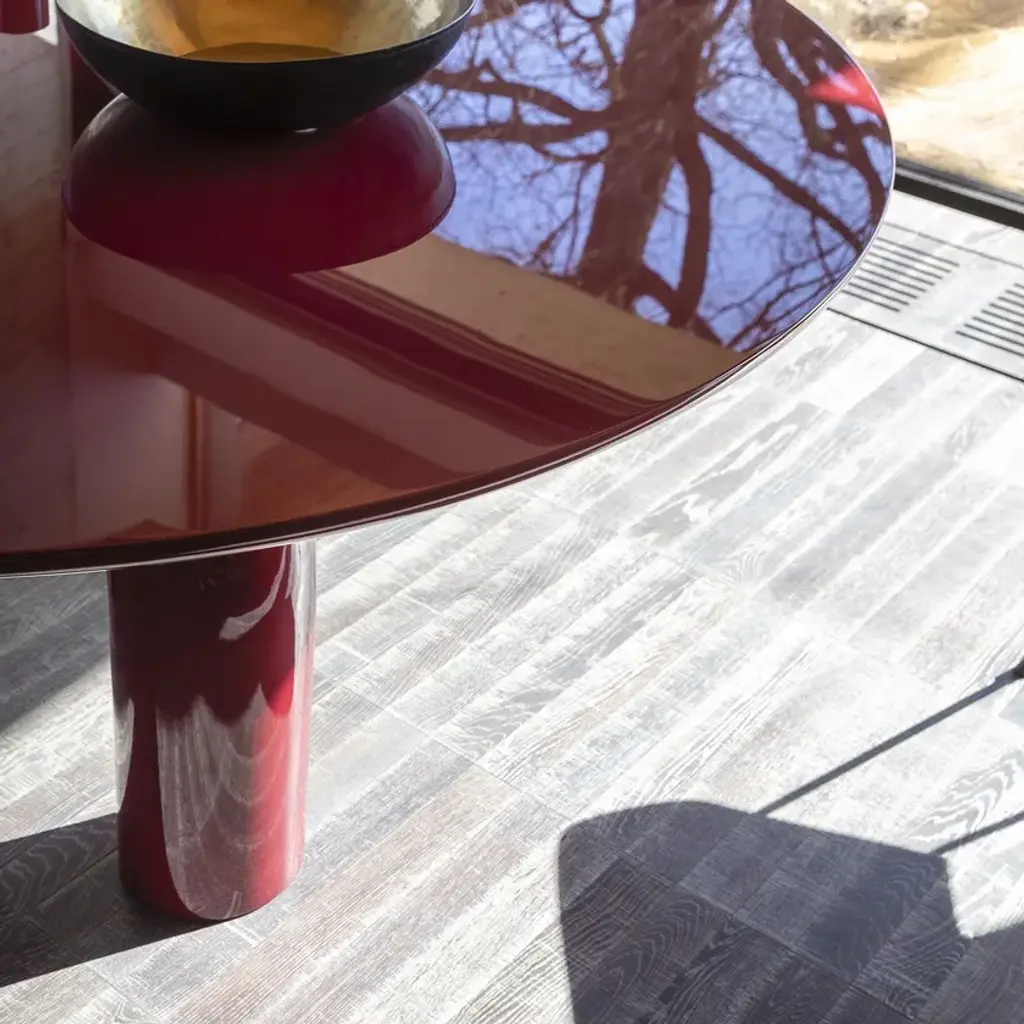Elephante is a round table with a rigid polyurethane base and a tambour wood top. Available in matte lacquer or direct glossy lacquer (brushed top) finishes, in all RAL colors from the sample collection, or hand-spatulated textured finish.Available finishes:MEL14T140/160/180 OP matte lacquer;MEL14T140/160/180 L glossy lacquer;MEL14T140/160/180 M textured.