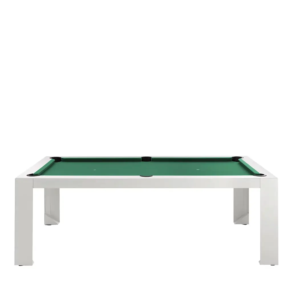 Supported by two rectangular open pedestals as the base, this handcrafted pool table is modern and minimalistic with its combination of simple, geometric forms. Viewed from the front, the use of negative space is evident; viewed from the side, the base appears to be one solid form. A hand-sanded hardwood top frames the impeccable game surface, allowing for the perfect combination of superior playability and irrefutable style.Size:7 Foot - 91”X52”Playing Area Of 39”X78”8 Foot – 101”X57”Playing Area Of 88”X44”