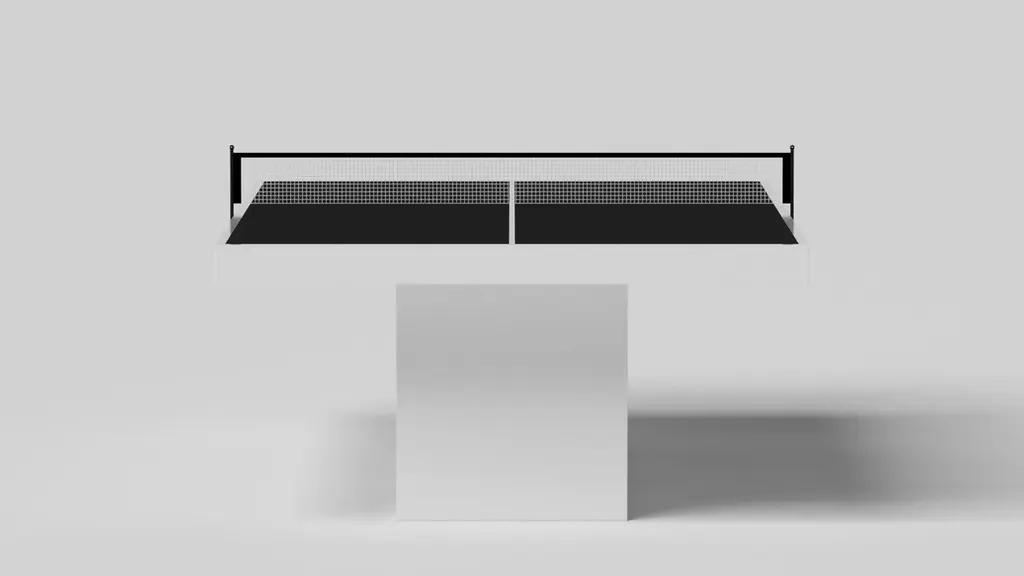 Supported by two rectangular open pedestals as the base, this handcrafted table tennis table is modern and minimalistic with its combination of simple, geometric forms. Viewed from the front, the use of negative space is evident; viewed from the side, the base appears to be one solid form. A hand-sanded hardwood top frames the impeccable game surface, allowing for the perfect combination of superior playability and irrefutable style.Size:108”X60”X30”Custom Sizes Available Per Request