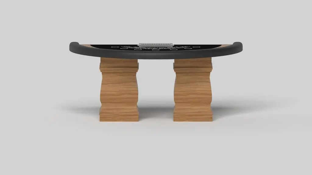 Two hand-sculpted legs bestow a sense of classic style upon the Baluster blackjack table in white. This luxury game table features a semicircular top perched upon two wide baluster column legs that mimic the curves and lines of crown molding. It’s a sophisticated option designed for superior playability – and it’s a chic addition to any room decorated with classic, traditional, or transitional decor.Size:88”X46”X30” (Bar Height)Custom Sizes Available Per Request
