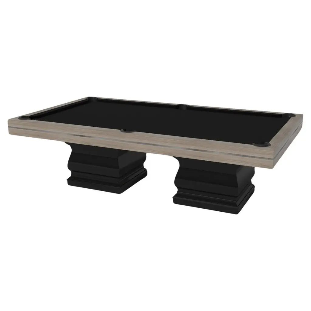 Two hand-sculpted legs bestow a sense of classic style upon this handcrafted pool table in white. This luxury wood game table features a smooth rectangular top perched upon two wide baluster column legs that mimic the curves and lines of crown molding. It’s a sophisticated option designed for superior playability – and it’s an easy addition to any room decorated with classic, traditional, or transitional decor.Size:8.5 Foot – 108”X60”Playing Area: 92”X46”