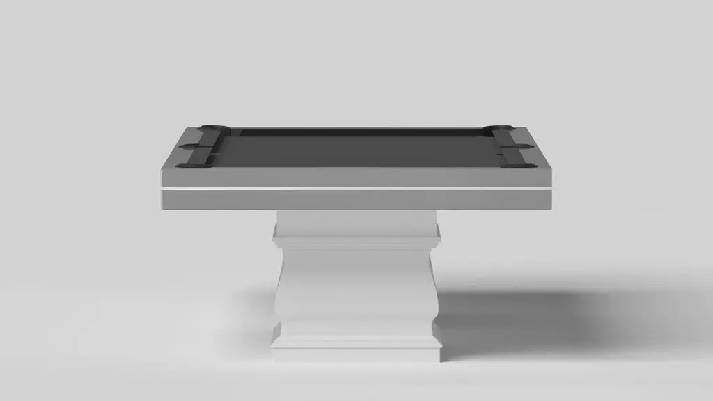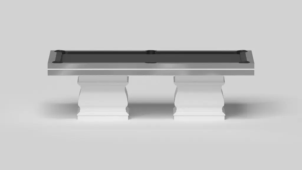 Two hand-sculpted legs bestow a sense of classic style upon this handcrafted pool table in white. This luxury wood game table features a smooth rectangular top perched upon two wide baluster column legs that mimic the curves and lines of crown molding. It’s a sophisticated option designed for superior playability – and it’s an easy addition to any room decorated with classic, traditional, or transitional decor.Size:7 Foot - 91”X52”Playing Area Of 39”X78”8 Foot – 101”X57”Playing Area Of 88”X44”