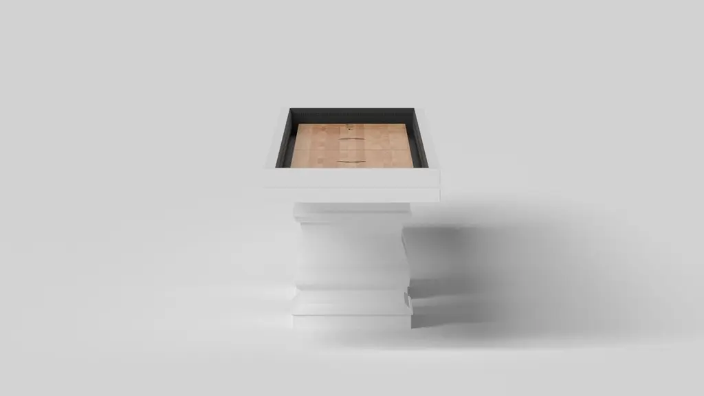 Two hand-sculpted legs bestow a sense of classic style upon this handcrafted shuffleboard table in white. This luxury wood game table features a smooth rectangular top perched upon two wide baluster column legs that mimic the curves and lines of crown molding. It’s a sophisticated option designed for superior playability – and it’s an easy addition to any room decorated with classic, traditional, or transitional decor. This table can be customized in your choice of bespoke sizes, colors, and finishes.Size:14 Foot - 168”X32”X34”Playing Area Of 152”X20”