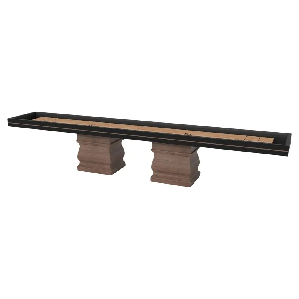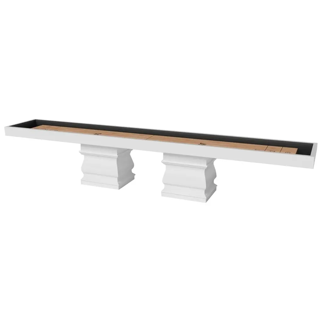 Two hand-sculpted legs bestow a sense of classic style upon this handcrafted shuffleboard table in white. This luxury wood game table features a smooth rectangular top perched upon two wide baluster column legs that mimic the curves and lines of crown molding. It’s a sophisticated option designed for superior playability – and it’s an easy addition to any room decorated with classic, traditional, or transitional decor. This table can be customized in your choice of bespoke sizes, colors, and finishes.Size:9 Foot - 108”X32”X34”Playing Area Of 92”X20”