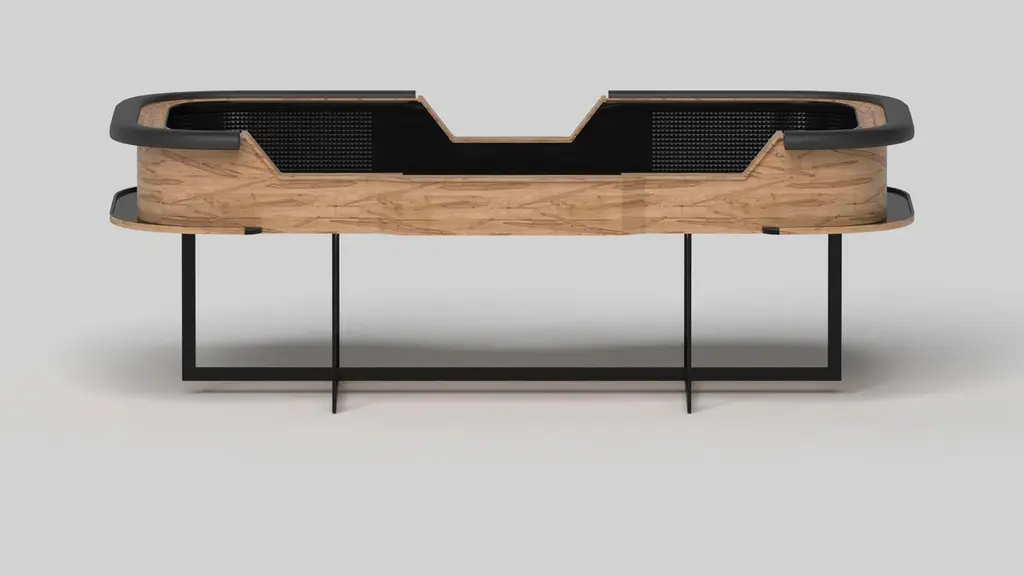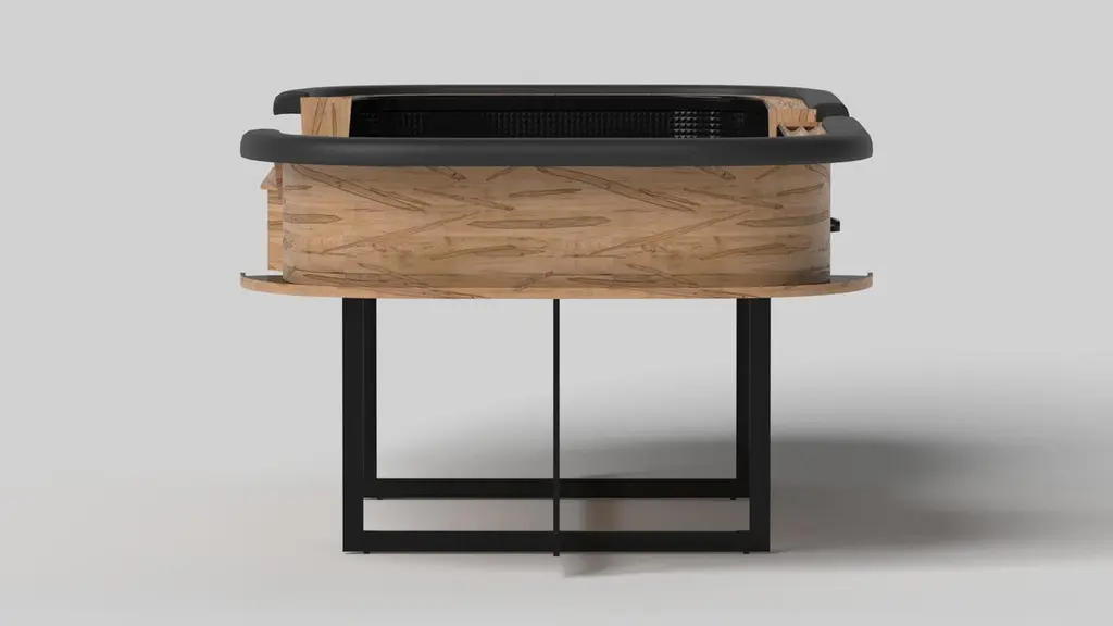 With an open metal foundation, our Beso table is a unique expression of contemporary forms and negative space. This craps table is handcrafted by our master artisans with a rectangle-in-rectangle base that echoes the angles and edges of a regulation game top. The aesthetic is simple yet sleek, combining superior playability with uncompromised style.Size:117”X60”X42”Custom Sizes Available Per Request