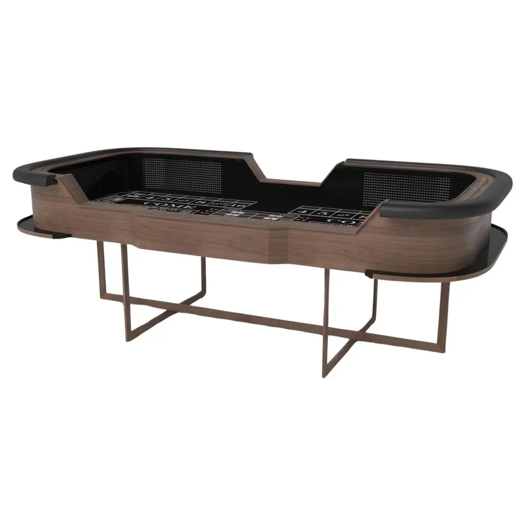 With an open metal foundation, our Beso table is a unique expression of contemporary forms and negative space. This craps table is handcrafted by our master artisans with a rectangle-in-rectangle base that echoes the angles and edges of a regulation game top. The aesthetic is simple yet sleek, combining superior playability with uncompromised style.Size:117”X60”X42”Custom Sizes Available Per Request