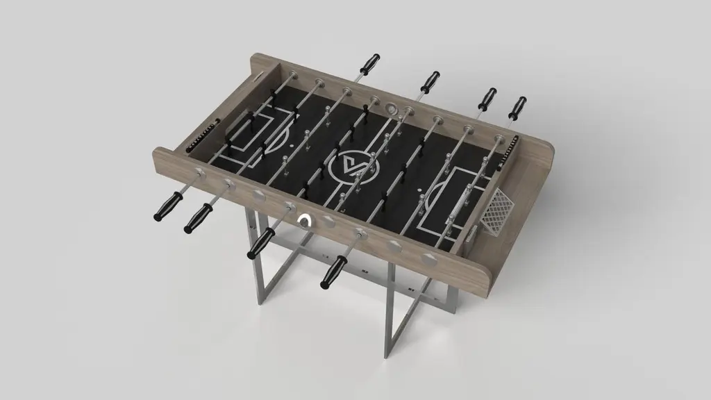 With an open metal foundation, our Beso table is a unique expression of contemporary forms and negative space. This foosball table is handcrafted by our master artisans with a rectangle-in-rectangle base that echoes the angles and edges of a regulation game top. The aesthetic is simple yet sleek, combining superior playability with uncompromised style.Size:62”X31”X36”