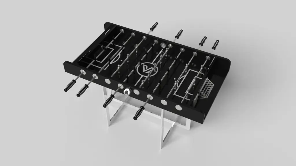 With an open metal foundation, our Beso table is a unique expression of contemporary forms and negative space. This foosball table is handcrafted by our master artisans with a rectangle-in-rectangle base that echoes the angles and edges of a regulation game top. The aesthetic is simple yet sleek, combining superior playability with uncompromised style.Size:62”X31”X36”