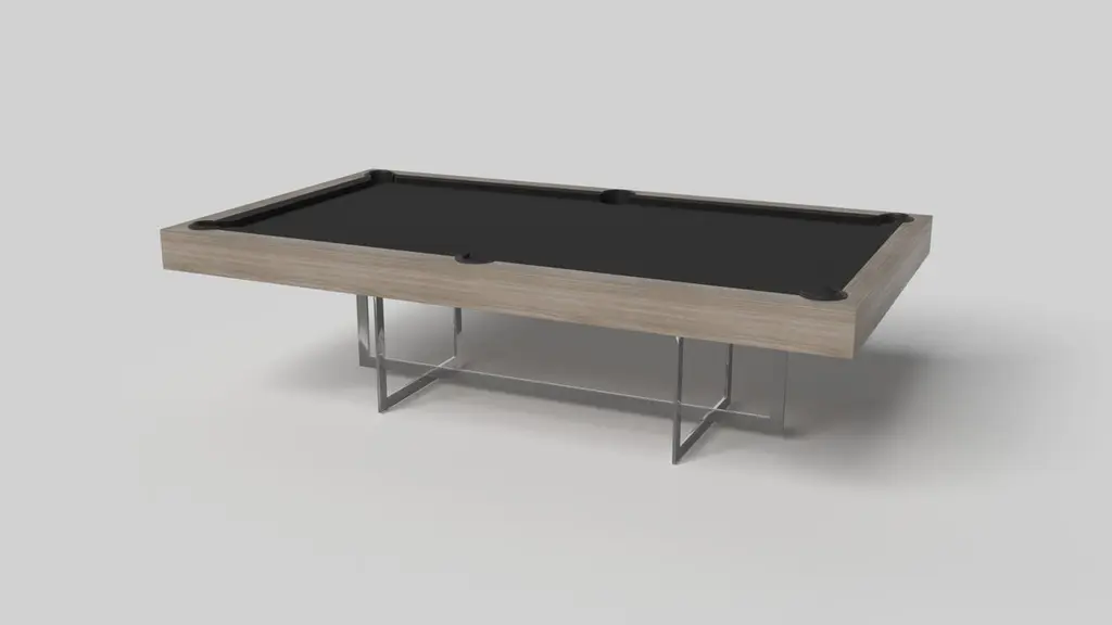 With an open metal foundation, our Beso table is a unique expression of contemporary forms and negative space. This pool table is handcrafted by our master artisans with a rectangle-in-rectangle base that echoes the angles and edges of a regulation game top. The aesthetic is simple yet sleek, combining superior playability with uncompromised style.Size:9 Foot – 113”X63”Playing Area: 100”X50”