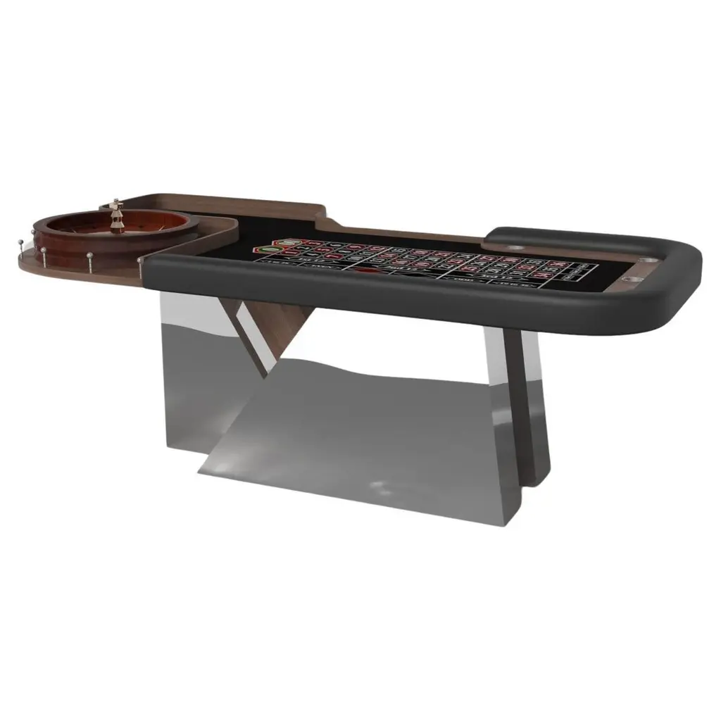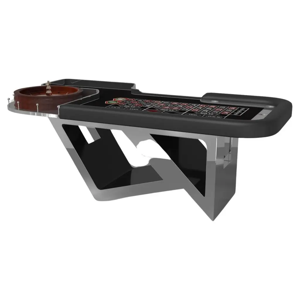 With an open metal foundation, our Beso table is a unique expression of contemporary forms and negative space. This roulette table is handcrafted by our master artisans with a rectangle-in-rectangle base that echoes the angles and edges of a regulation game top. The aesthetic is simple yet sleek, combining superior playability with uncompromised style.Size:98”X50”X30”Custom Sizes Available Per Request