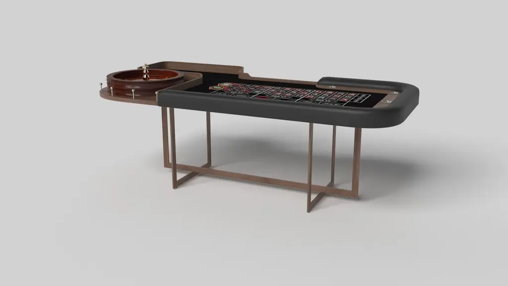 With an open metal foundation, our Beso table is a unique expression of contemporary forms and negative space. This roulette table is handcrafted by our master artisans with a rectangle-in-rectangle base that echoes the angles and edges of a regulation game top. The aesthetic is simple yet sleek, combining superior playability with uncompromised style.Size:98”X50”X30”Custom Sizes Available Per Request