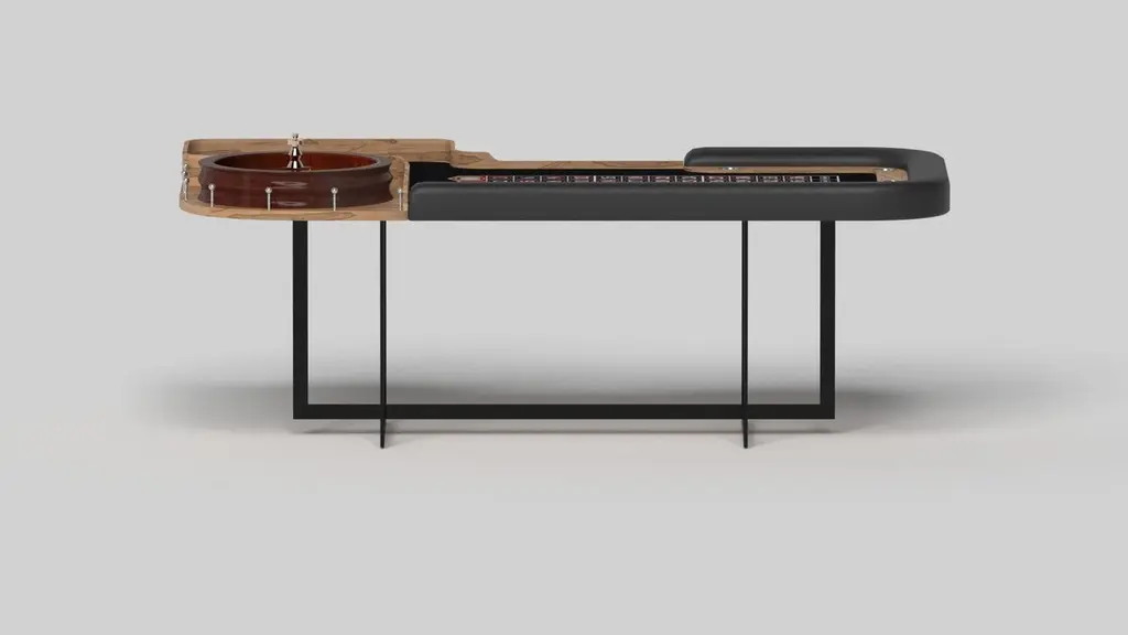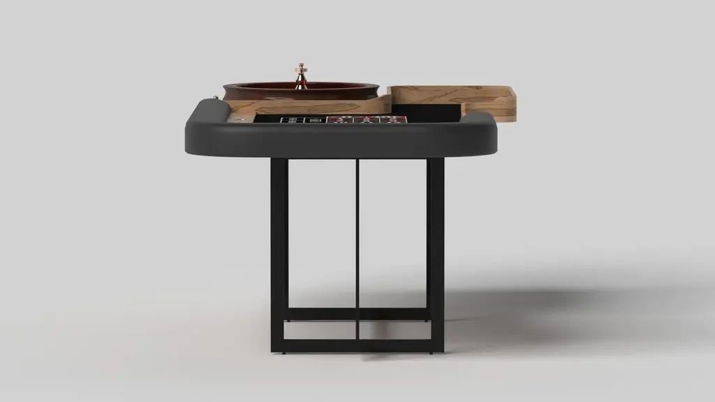 With an open metal foundation, our Beso table is a unique expression of contemporary forms and negative space. This roulette table is handcrafted by our master artisans with a rectangle-in-rectangle base that echoes the angles and edges of a regulation game top. The aesthetic is simple yet sleek, combining superior playability with uncompromised style.Size:98”X50”X30”Custom Sizes Available Per Request