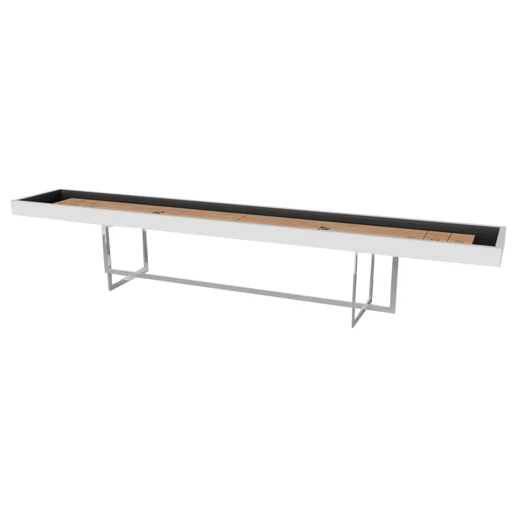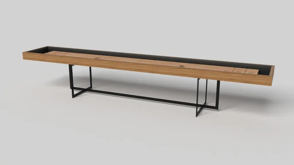 With an open metal foundation, our Beso table is a unique expression of contemporary forms and negative space. This shuffleboard table is handcrafted by our master artisans with a rectangle-in-rectangle base that echoes the angles and edges of a regulation game top. The aesthetic is simple yet sleek, combining superior playability with uncompromised style.Size:18 Foot - 216”X32”X34”Playing Area Of 200”X20”