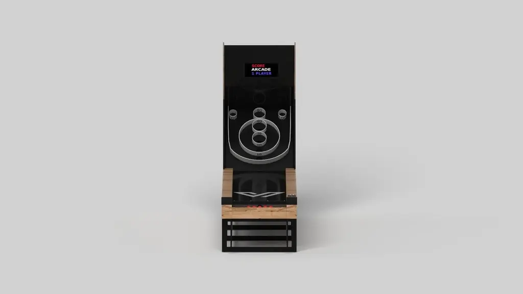 With an open metal foundation, our Beso table is a unique expression of contemporary forms and negative space. This basketball game is handcrafted by our master artisans with a rectangle-in-rectangle base that contrasts against the round basketball hoop. The aesthetic is simple yet sleek, combining superior playability with uncompromised style. Digital components, including LED lights and sound effects, are built into the design.