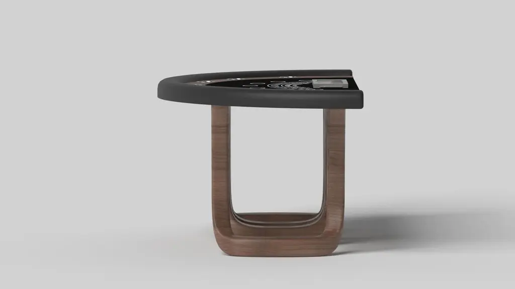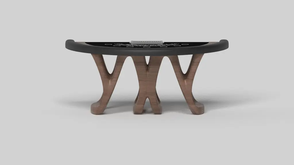 Inspired by the work of Antoni Gaudi and the movement of Catalan Modernism, the Draco blackjack table in walnut boasts bold style with smooth, curved legs and a casino-grade table top with a chip rack and betting circles for professional game play. Expertly crafted from top to bottom, this table features a high-end, contemporary design in a smooth walnut finish.Size:88”X46”X30” (Bar Height)Custom Sizes Available Per Request