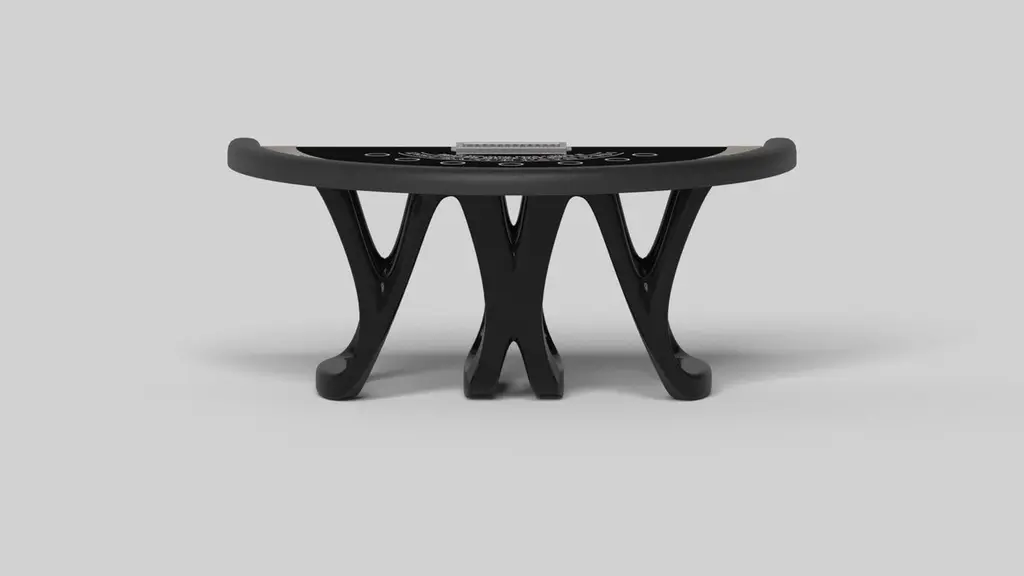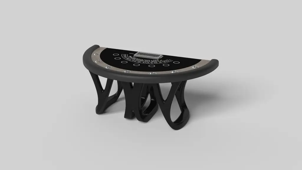 Inspired by the work of Antoni Gaudi and the movement of Catalan Modernism, the Draco blackjack table in walnut boasts bold style with smooth, curved legs and a casino-grade table top with a chip rack and betting circles for professional game play. Expertly crafted from top to bottom, this table features a high-end, contemporary design in a smooth walnut finish.Size:88”X46”X30” (Bar Height)Custom Sizes Available Per Request