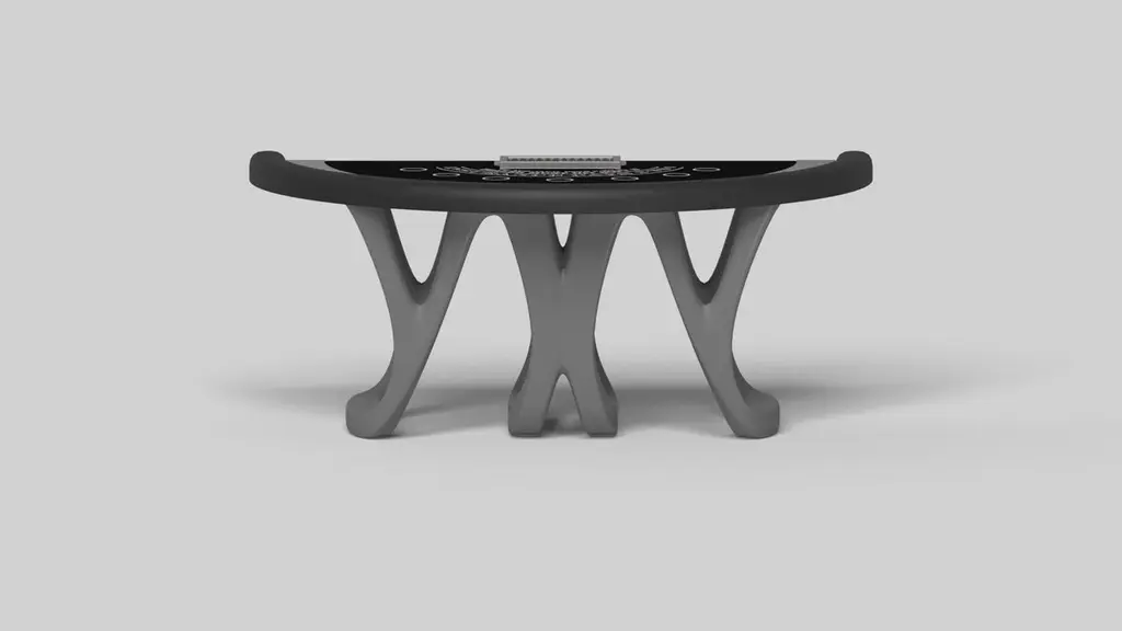 Inspired by the work of Antoni Gaudi and the movement of Catalan Modernism, the Draco blackjack table in walnut boasts bold style with smooth, curved legs and a casino-grade table top with a chip rack and betting circles for professional game play. Expertly crafted from top to bottom, this table features a high-end, contemporary design in a smooth walnut finish.Size:88”X46”X30” (Bar Height)Custom Sizes Available Per Request