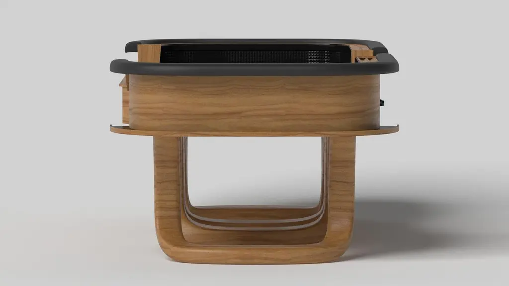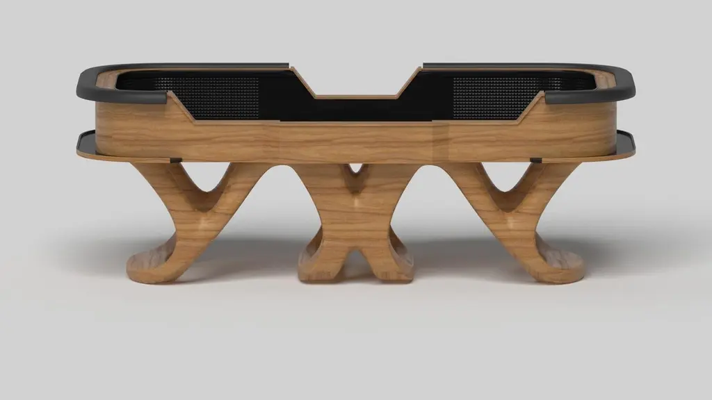 Inspired by the work of Antoni Gaudi and the movement of Catalan Modernism, the Draco craps table in walnut boasts bold style with smooth, curved legs and a clean top with point boxes and bet blocks for professional game play. Expertly crafted from top to bottom, this table features a high-end, contemporary design in a smooth walnut finish.Size:117”X60”X42”Custom Sizes Available Per Request