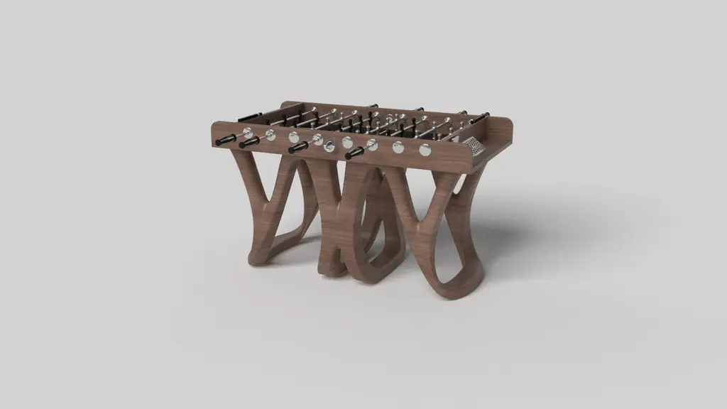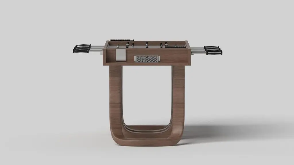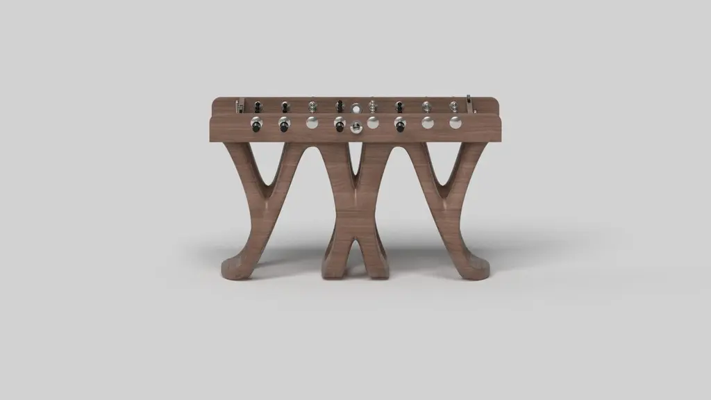 Inspired by the work of Antoni Gaudi and the movement of Catalan Modernism, the Draco foosball table in walnut boasts bold style with smooth, curved legs and a detailed surface for professional game play. Expertly crafted from solid wood, this table features a high-end, contemporary design in a neutral wood finish.Size:62”X31”X36”