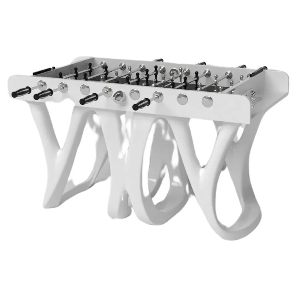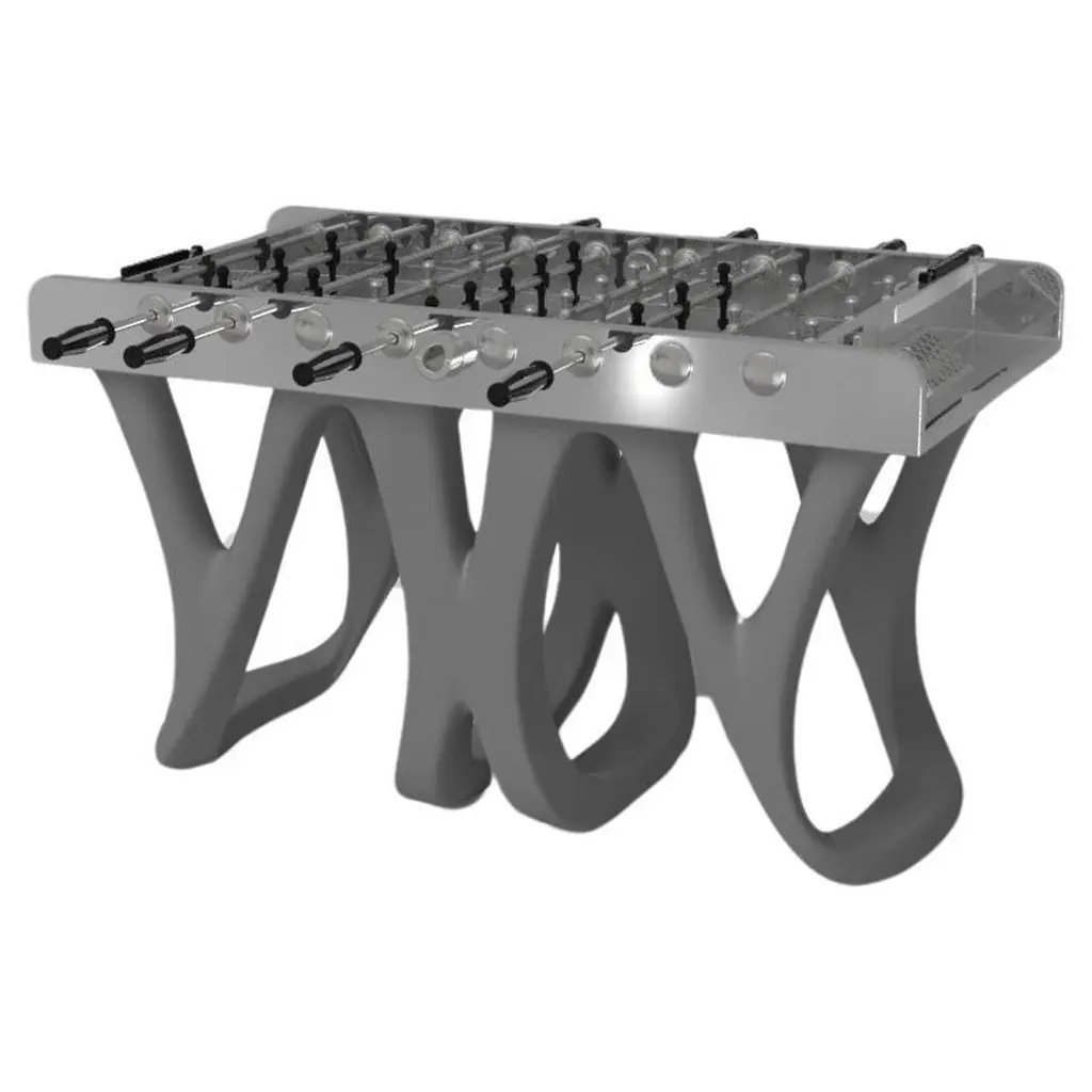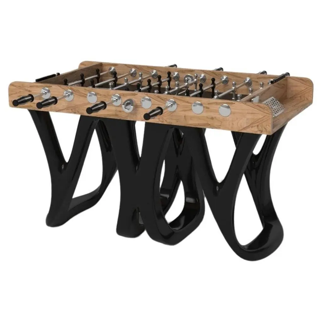 Inspired by the work of Antoni Gaudi and the movement of Catalan Modernism, the Draco foosball table in walnut boasts bold style with smooth, curved legs and a detailed surface for professional game play. Expertly crafted from solid wood, this table features a high-end, contemporary design in a neutral wood finish.Size:62”X31”X36”