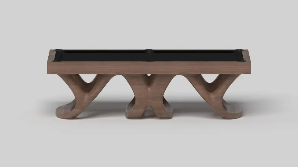 Inspired by the work of Antoni Gaudi and the movement of Catalan Modernism, the Draco pool table in walnut boasts bold style with smooth, curved legs and a rich felt surface for professional game play. Expertly crafted from solid wood, this table features a high-end, contemporary design in a versatile walnut finishSize:8.5 Foot – 108”X60”Playing Area: 92”X46”