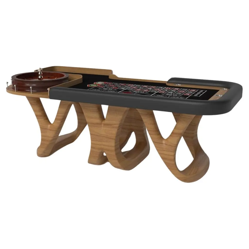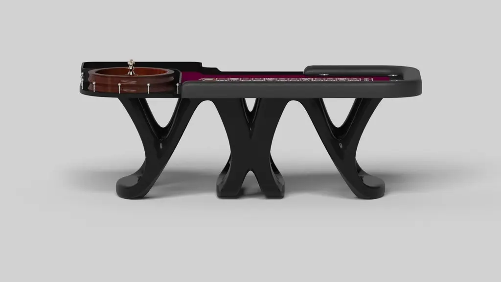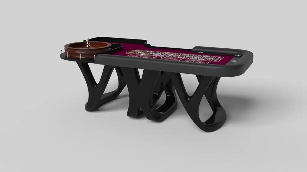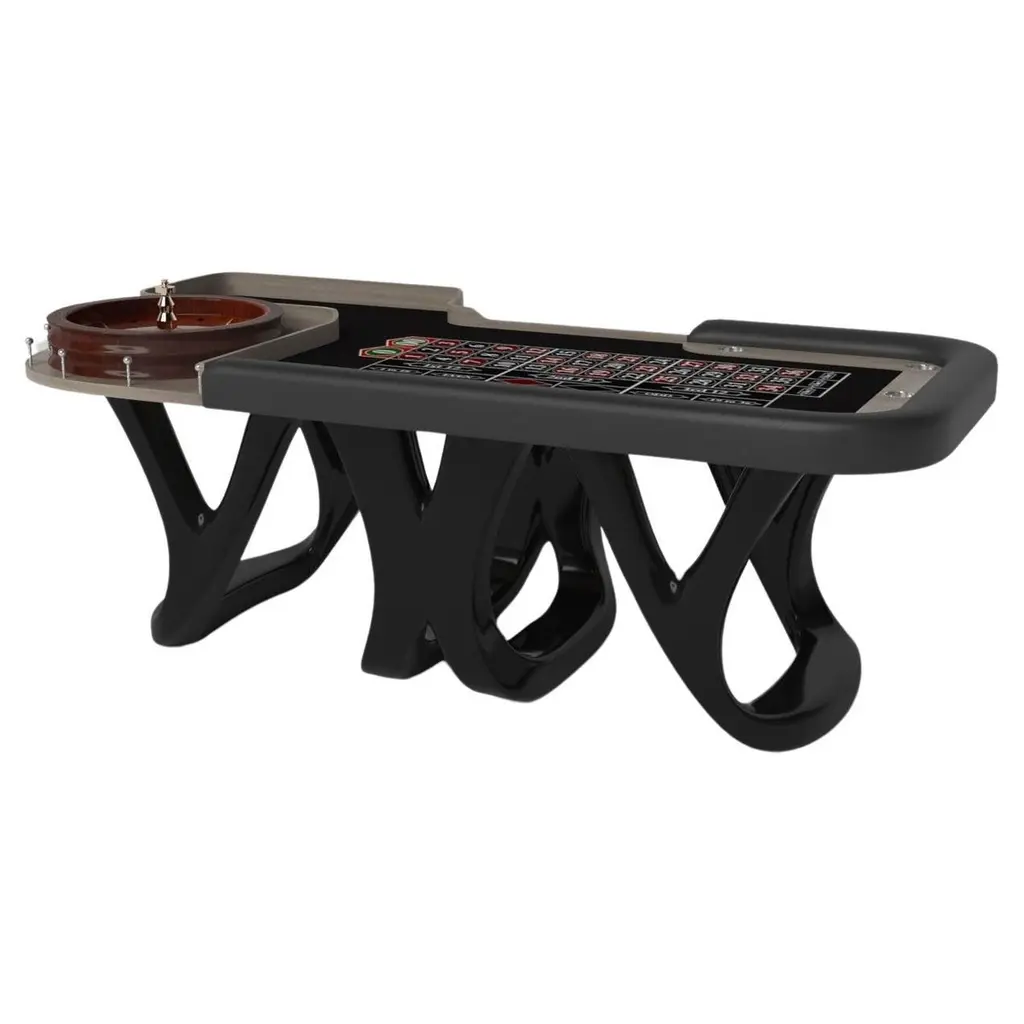 Inspired by the work of Antoni Gaudi and the movement of Catalan Modernism, the Draco roulette table in walnut boasts bold style with smooth, curved legs and a crisp and casino-grade top with a wheel and bet boxes for professional game play. Expertly crafted from top to bottom, this table features a high-end, contemporary design in a smooth black finish.Size:98”X50”X30”Custom Sizes Available Per Request