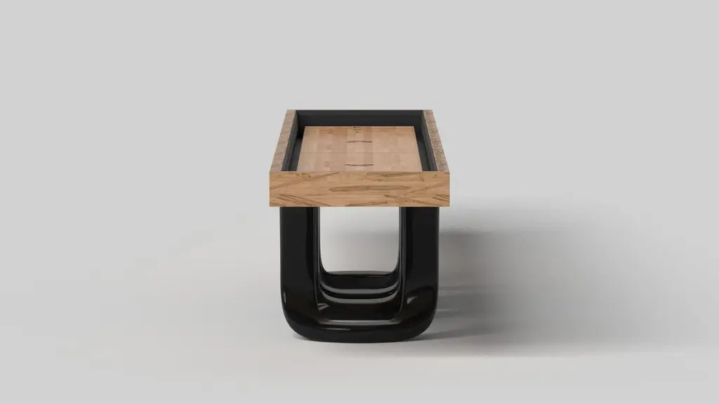 Inspired by the work of Antoni Gaudi and the movement of Catalan Modernism, the Draco shuffleboard table in Walnut boasts bold style with smooth, curved legs and a rich smooth professional grade Maple wood surface surface for professional game play. Expertly crafted from Walnut wood, this table features a high-end, contemporary design in a black finish with stark white accents.Size:18 Foot - 216”X32”X34”Playing Area Of 200”X20”