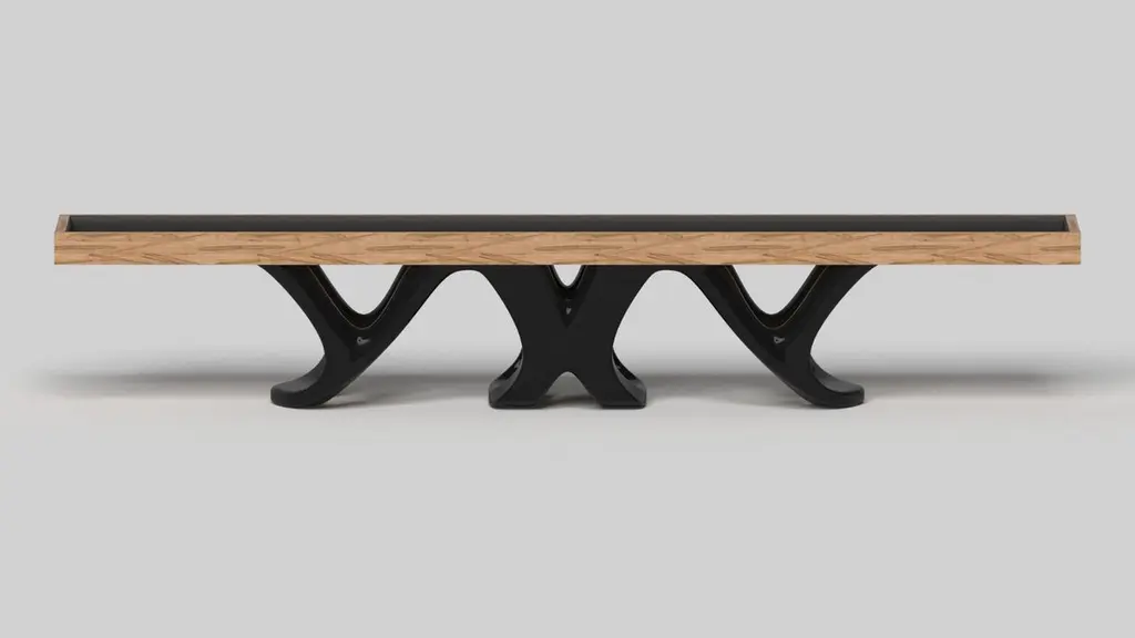 Inspired by the work of Antoni Gaudi and the movement of Catalan Modernism, the Draco shuffleboard table in Walnut boasts bold style with smooth, curved legs and a rich smooth professional grade Maple wood surface surface for professional game play. Expertly crafted from Walnut wood, this table features a high-end, contemporary design in a black finish with stark white accents.Size:9 Foot - 108”X32”X34”Playing Area Of 92”X20”