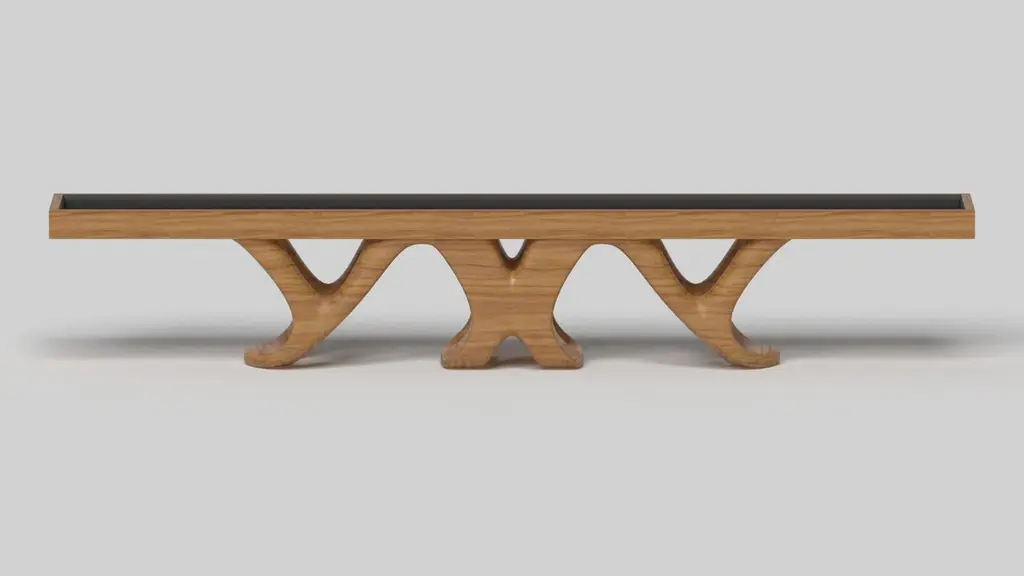 Inspired by the work of Antoni Gaudi and the movement of Catalan Modernism, the Draco shuffleboard table in Walnut boasts bold style with smooth, curved legs and a rich smooth professional grade Maple wood surface surface for professional game play. Expertly crafted from Walnut wood, this table features a high-end, contemporary design in a black finish with stark white accents.Size:14 Foot - 168”X32”X34”Playing Area Of 152”X20”