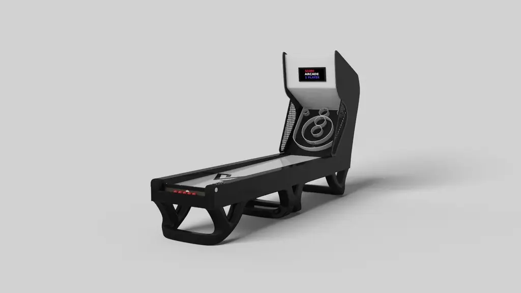 Inspired by the work of Antoni Gaudi and the movement of Catalan Modernism, the Draco skeeball game boasts bold style with smooth, curved legs and built in digital components for energetic game play. Expertly crafted from solid wood, this game features a high-end, contemporary design.