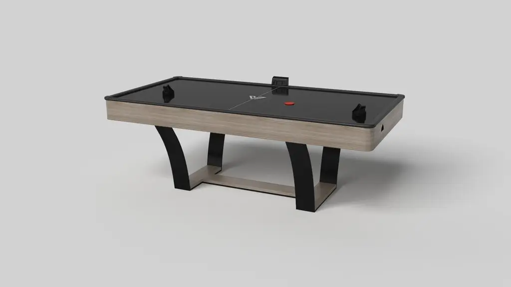With an I-shaped metal base, slightly sloped metal legs, and a contrasting wood top, the Elite air hockey table exudes modern sophistication while evoking a sense of art deco design. This table is a confluence of style, made to meet today's demands and appeal to tomorrow's sense of style, while also harkening back to the past.Size:88”X45”X31”