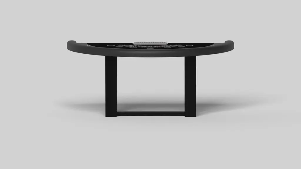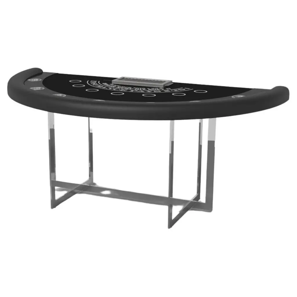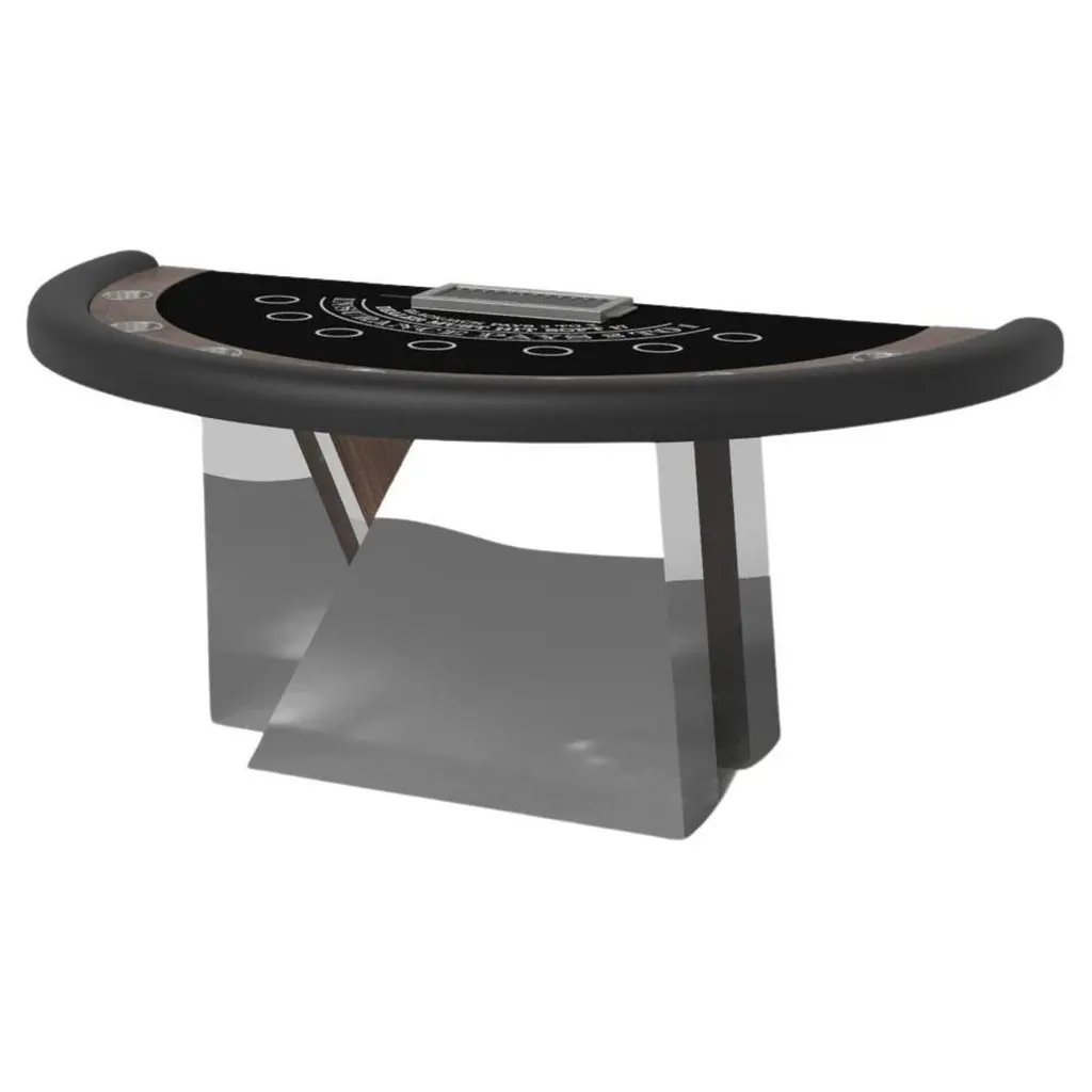 With an I-shaped metal base, slightly sloped metal legs, and a contrasting wood top, the Elite blackjack table exudes modern sophistication while evoking a sense of art deco design. This table is a confluence of style, made to meet today's demands and appeal to tomorrow's sense of style, while also harkening back to the past.Size:88”X46”X30” (Bar Height)Custom Sizes Available Per Request