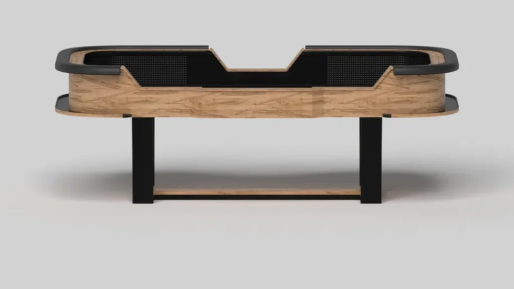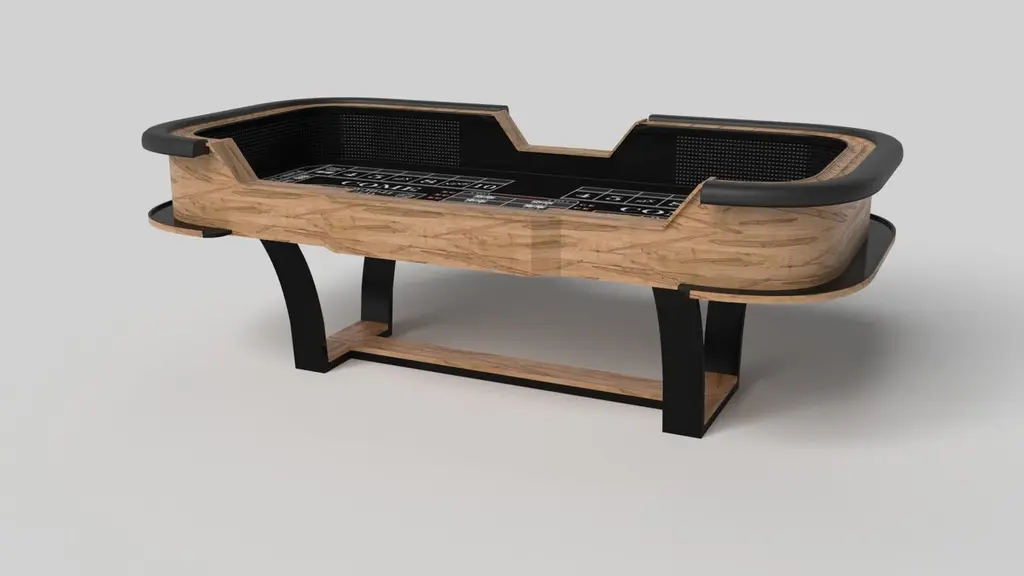 With an I-shaped metal base, slightly sloped metal legs, and a contrasting wood top, the Elite craps table exudes modern sophistication while evoking a sense of art deco design. This table is a confluence of style, made to meet today's demands and appeal to tomorrow's sense of style, while also harkening back to the past.Size:117”X60”X42”Custom Sizes Available Per Request