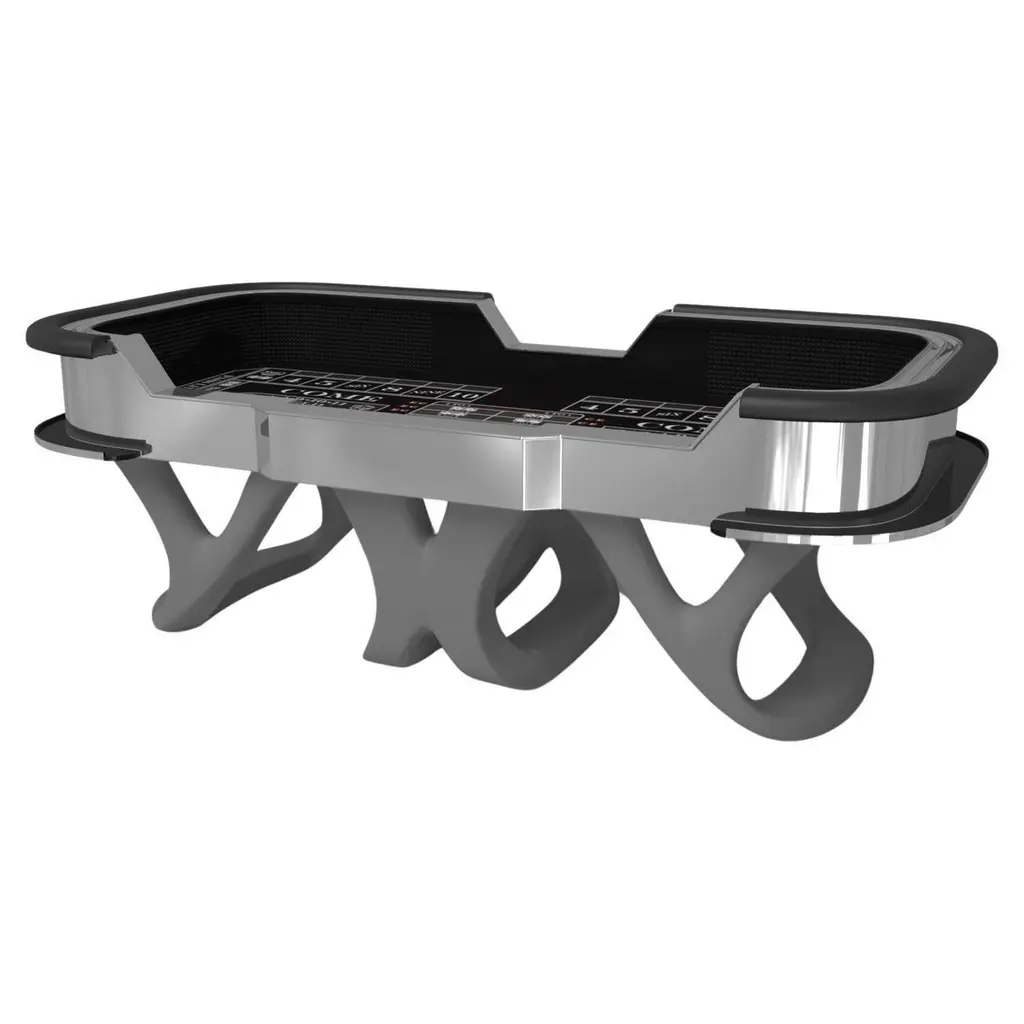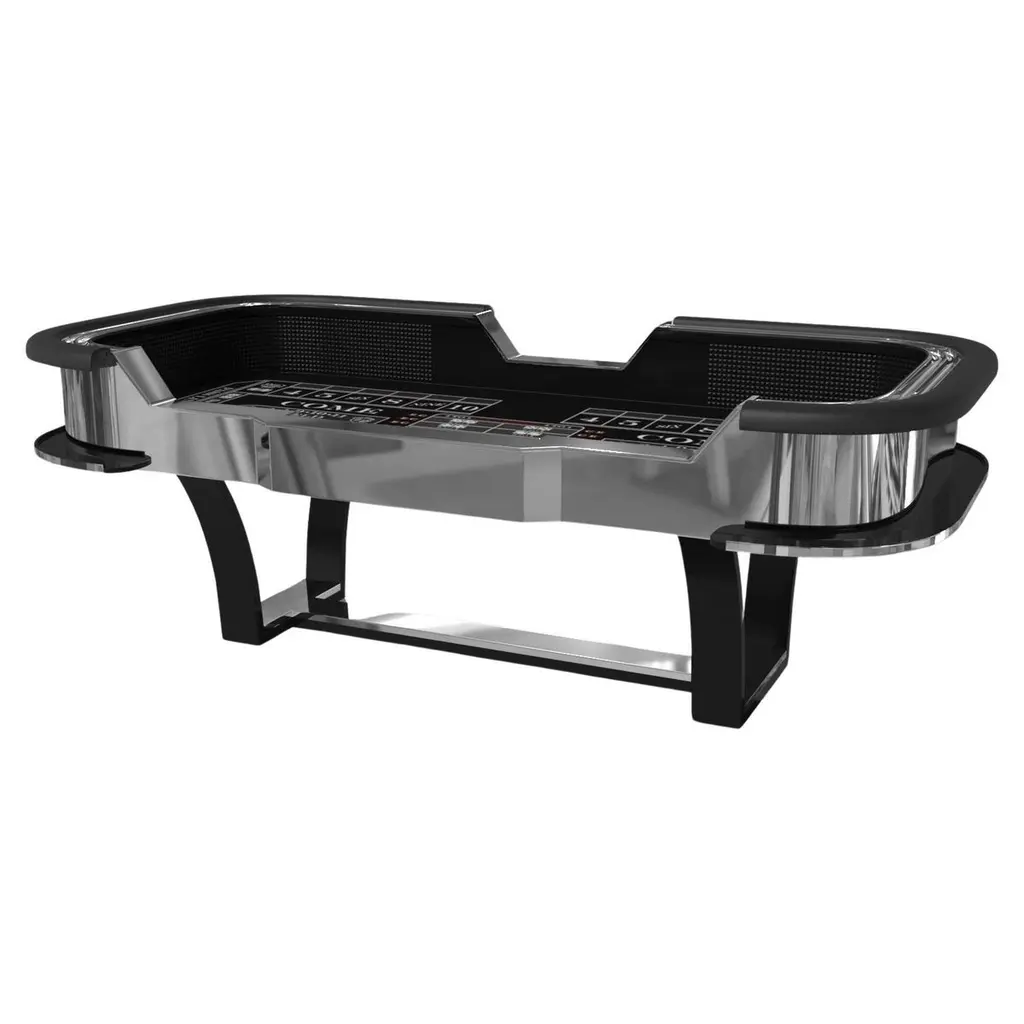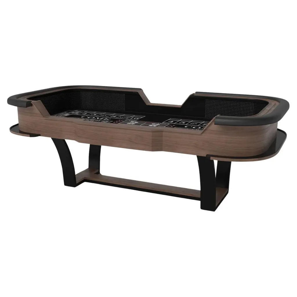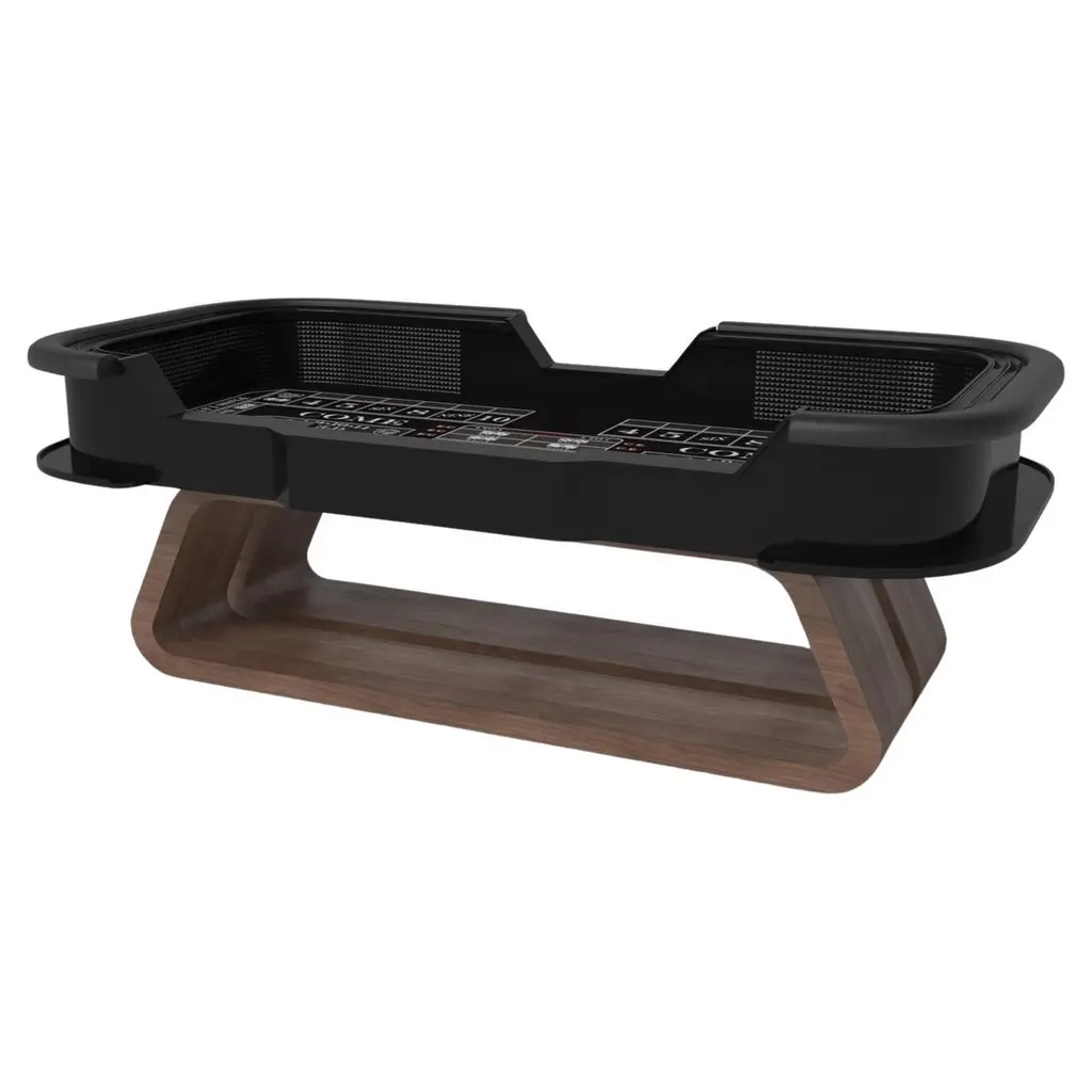With an I-shaped metal base, slightly sloped metal legs, and a contrasting wood top, the Elite craps table exudes modern sophistication while evoking a sense of art deco design. This table is a confluence of style, made to meet today's demands and appeal to tomorrow's sense of style, while also harkening back to the past.Size:117”X60”X42”Custom Sizes Available Per Request