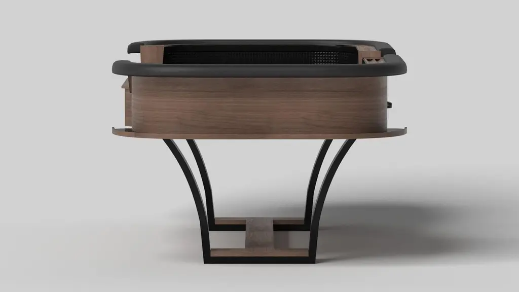 With an I-shaped metal base, slightly sloped metal legs, and a contrasting wood top, the Elite craps table exudes modern sophistication while evoking a sense of art deco design. This table is a confluence of style, made to meet today's demands and appeal to tomorrow's sense of style, while also harkening back to the past.Size:117”X60”X42”Custom Sizes Available Per Request