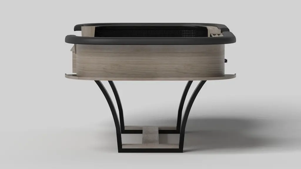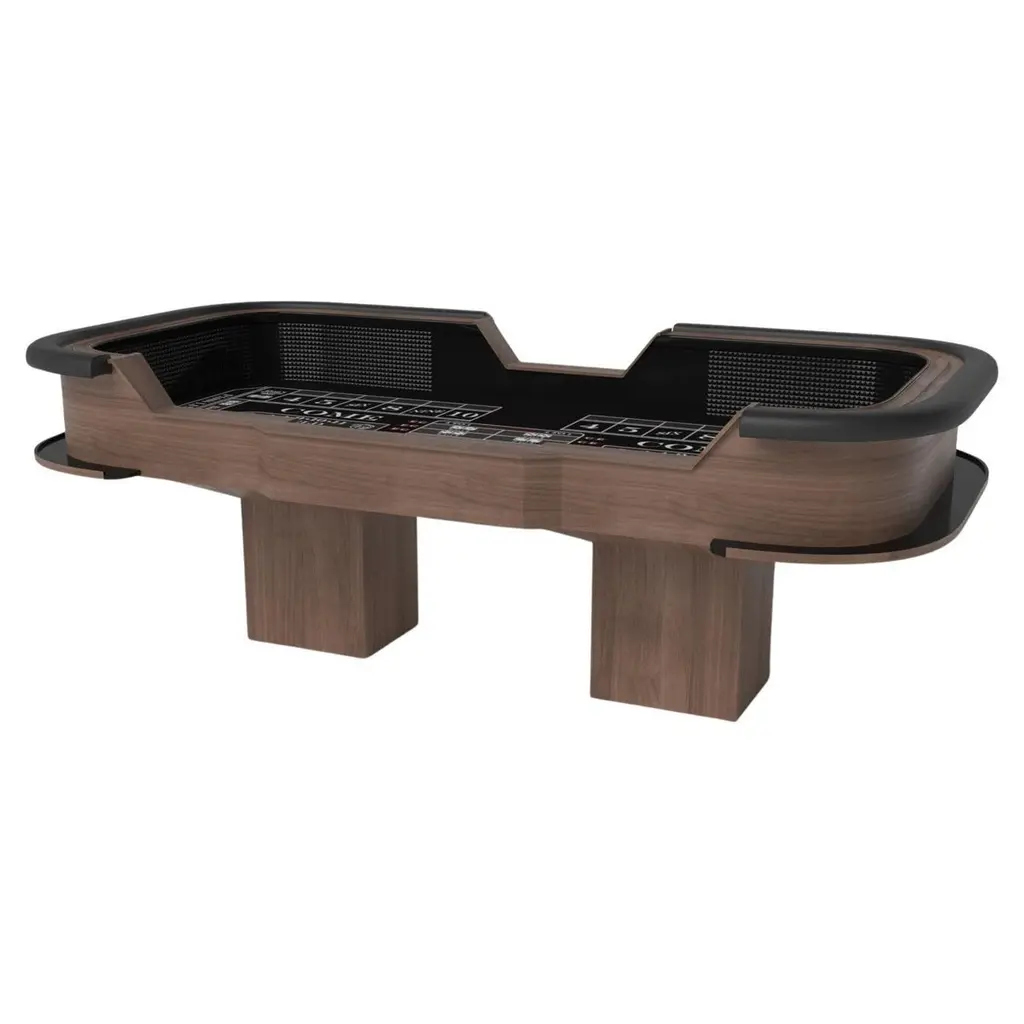 With an I-shaped metal base, slightly sloped metal legs, and a contrasting wood top, the Elite craps table exudes modern sophistication while evoking a sense of art deco design. This table is a confluence of style, made to meet today's demands and appeal to tomorrow's sense of style, while also harkening back to the past.Size:117”X60”X42”Custom Sizes Available Per Request