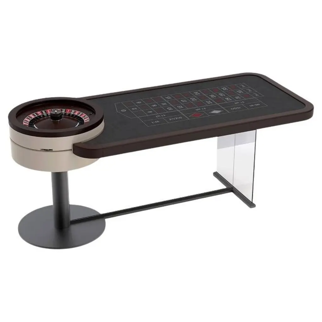 With an I-shaped metal base, slightly sloped metal legs, and a contrasting wood top, the Elite craps table exudes modern sophistication while evoking a sense of art deco design. This table is a confluence of style, made to meet today's demands and appeal to tomorrow's sense of style, while also harkening back to the past.Size:117”X60”X42”Custom Sizes Available Per Request