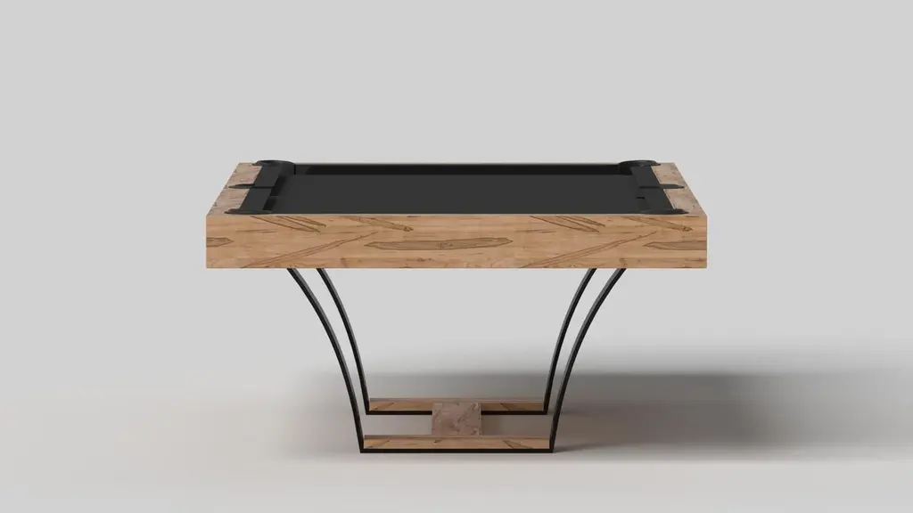 With an I-shaped metal base, slightly sloped metal legs, and a contrasting wood top, the Elite pool table exudes modern sophistication while evoking a sense of art deco design. This table is a confluence of style, made to meet today's demands and appeal to tomorrow's sense of style, while also harkening back to the past.Size:7 Foot - 91”X52”Playing Area Of 39”X78”8 Foot – 101”X57”Playing Area Of 88”X44”