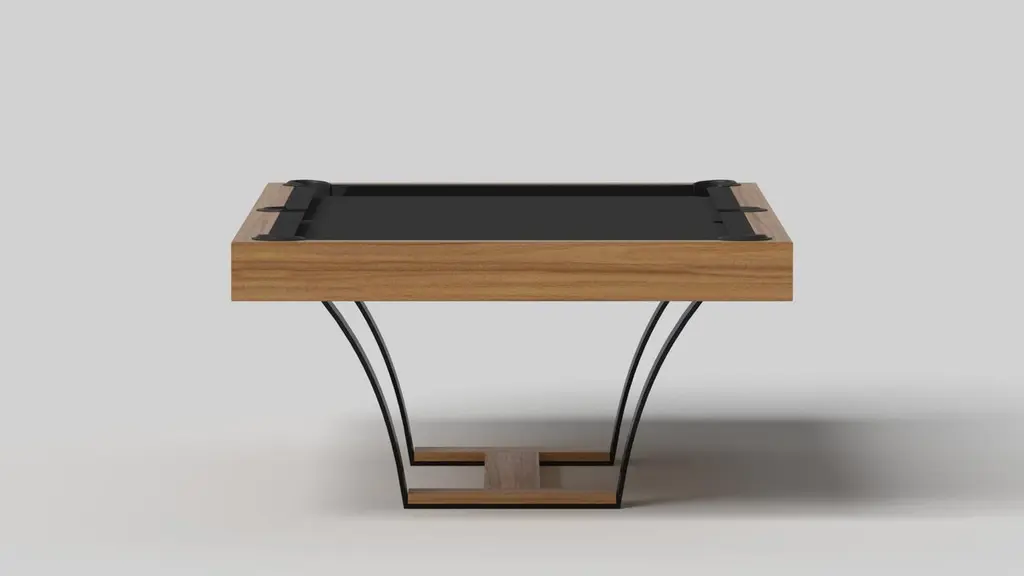 With an I-shaped metal base, slightly sloped metal legs, and a contrasting wood top, the Elite pool table exudes modern sophistication while evoking a sense of art deco design. This table is a confluence of style, made to meet today's demands and appeal to tomorrow's sense of style, while also harkening back to the past.Size:7 Foot - 91”X52”Playing Area Of 39”X78”8 Foot – 101”X57”Playing Area Of 88”X44”