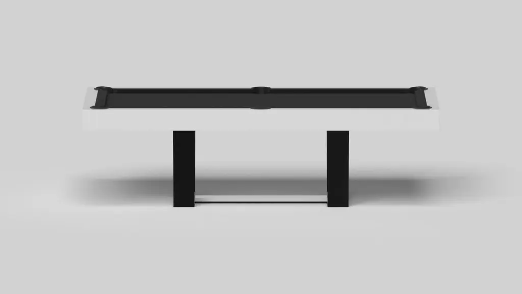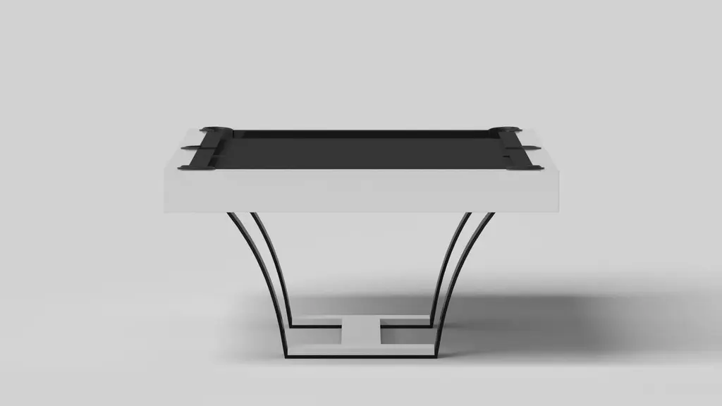 With an I-shaped metal base, slightly sloped metal legs, and a contrasting wood top, the Elite pool table exudes modern sophistication while evoking a sense of art deco design. This table is a confluence of style, made to meet today's demands and appeal to tomorrow's sense of style, while also harkening back to the past.Size:9 Foot – 113”X63”Playing Area: 100”X50”
