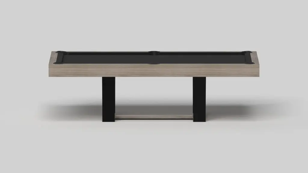 With an I-shaped metal base, slightly sloped metal legs, and a contrasting wood top, the Elite pool table exudes modern sophistication while evoking a sense of art deco design. This table is a confluence of style, made to meet today's demands and appeal to tomorrow's sense of style, while also harkening back to the past.Size:7 Foot - 91”X52”Playing Area Of 39”X78”8 Foot – 101”X57”Playing Area Of 88”X44”