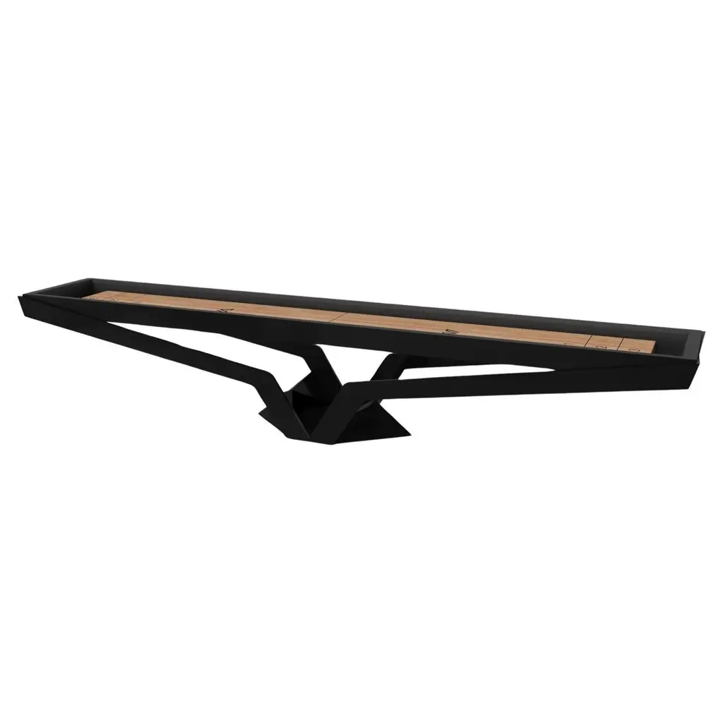 The Enzo shuffleboard table is Inspired by the aerodynamic angles of top-of-the-line European vehicles. Designed with sleek, V-shaped lines and a thoughtful use of negative space, this table boasts an energetic sense of spirit while epitomizing the look of luxury and evoking the sense of speed. A perfect catalyst for encouraging hours of friendly or competitive play, this handcrafted design is available in your choice of teak, white oak, curly maple, black/white, stainless steel, and custom colors.Size:12 Foot - 144”X32”X34”Playing Area Of 128”X20”