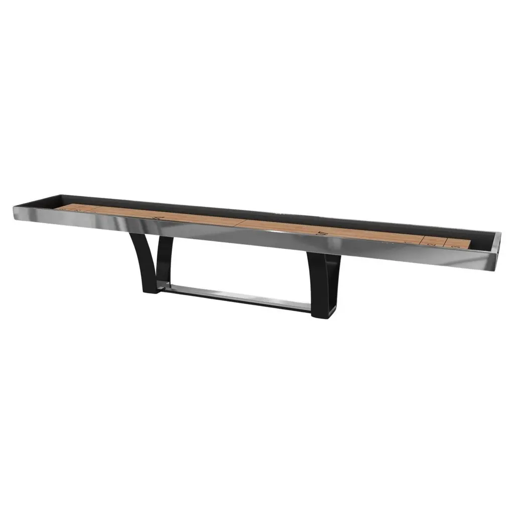 Inspired by the work of Antoni Gaudi and the movement of Catalan Modernism, the Draco shuffleboard table in Walnut boasts bold style with smooth, curved legs and a rich smooth professional grade Maple wood surface surface for professional game play. Expertly crafted from Walnut wood, this table features a high-end, contemporary design in a black finish with stark white accents.Size:12 Foot - 144”X32”X34”Playing Area Of 128”X20”
