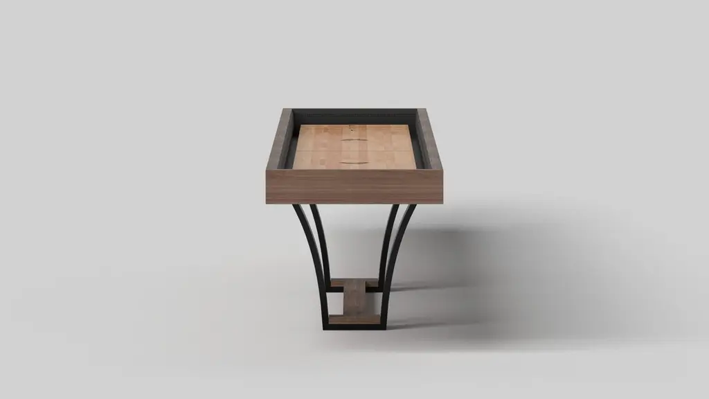 With an I-shaped metal base, slightly sloped metal legs, and a contrasting wood top, the Elite shuffleboard table exudes modern sophistication while evoking a sense of art deco design. This table is a confluence of style, made to meet today's demands and appeal to tomorrow's sense of style, while also harkening back to the past.Size:14 Foot - 168”X32”X34”Playing Area Of 152”X20”