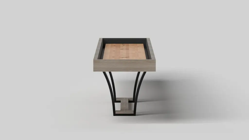 With an I-shaped metal base, slightly sloped metal legs, and a contrasting wood top, the Elite shuffleboard table exudes modern sophistication while evoking a sense of art deco design. This table is a confluence of style, made to meet today's demands and appeal to tomorrow's sense of style, while also harkening back to the past.Size:22 Foot - 264”X32”X34”Playing Area Of 248”X20”